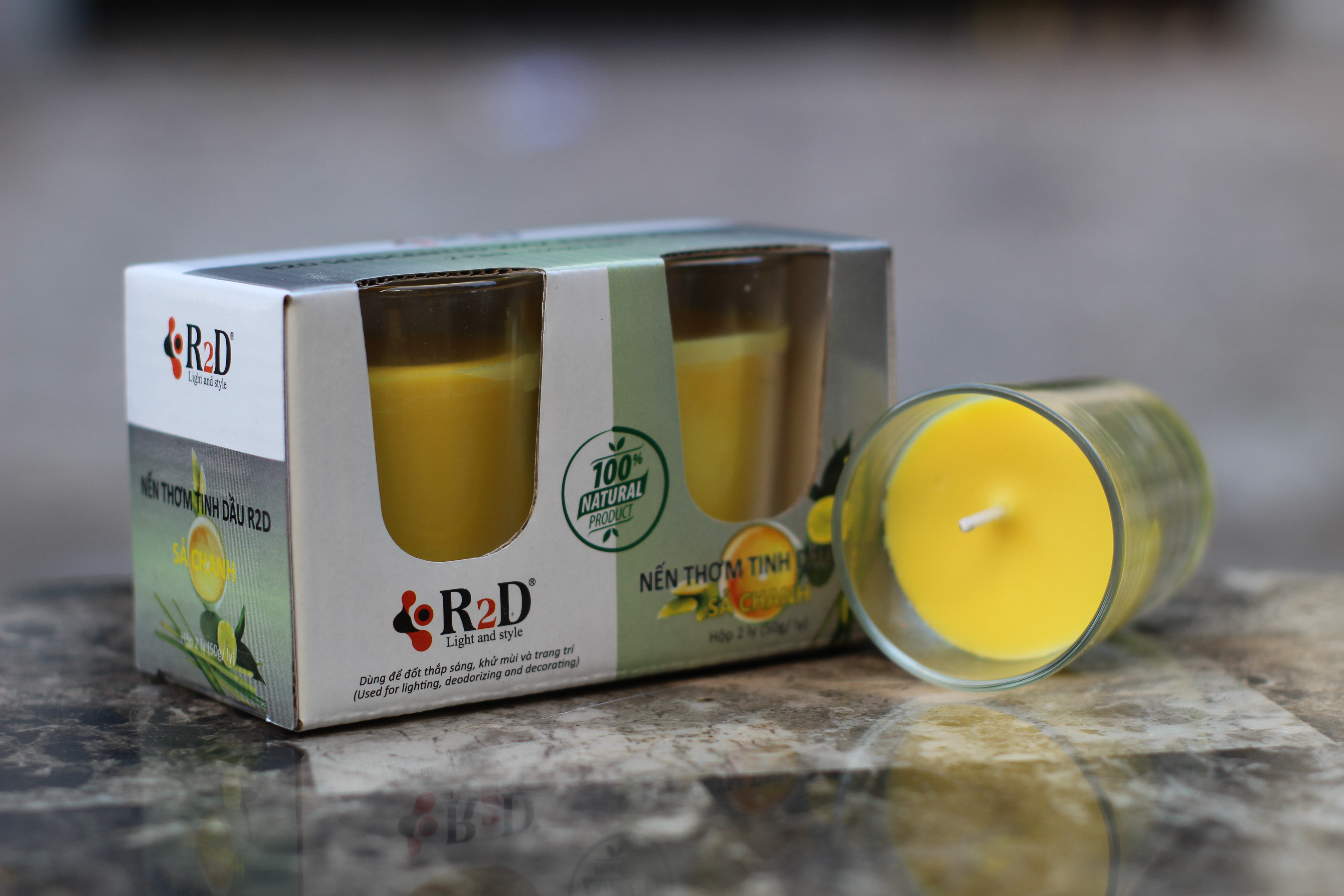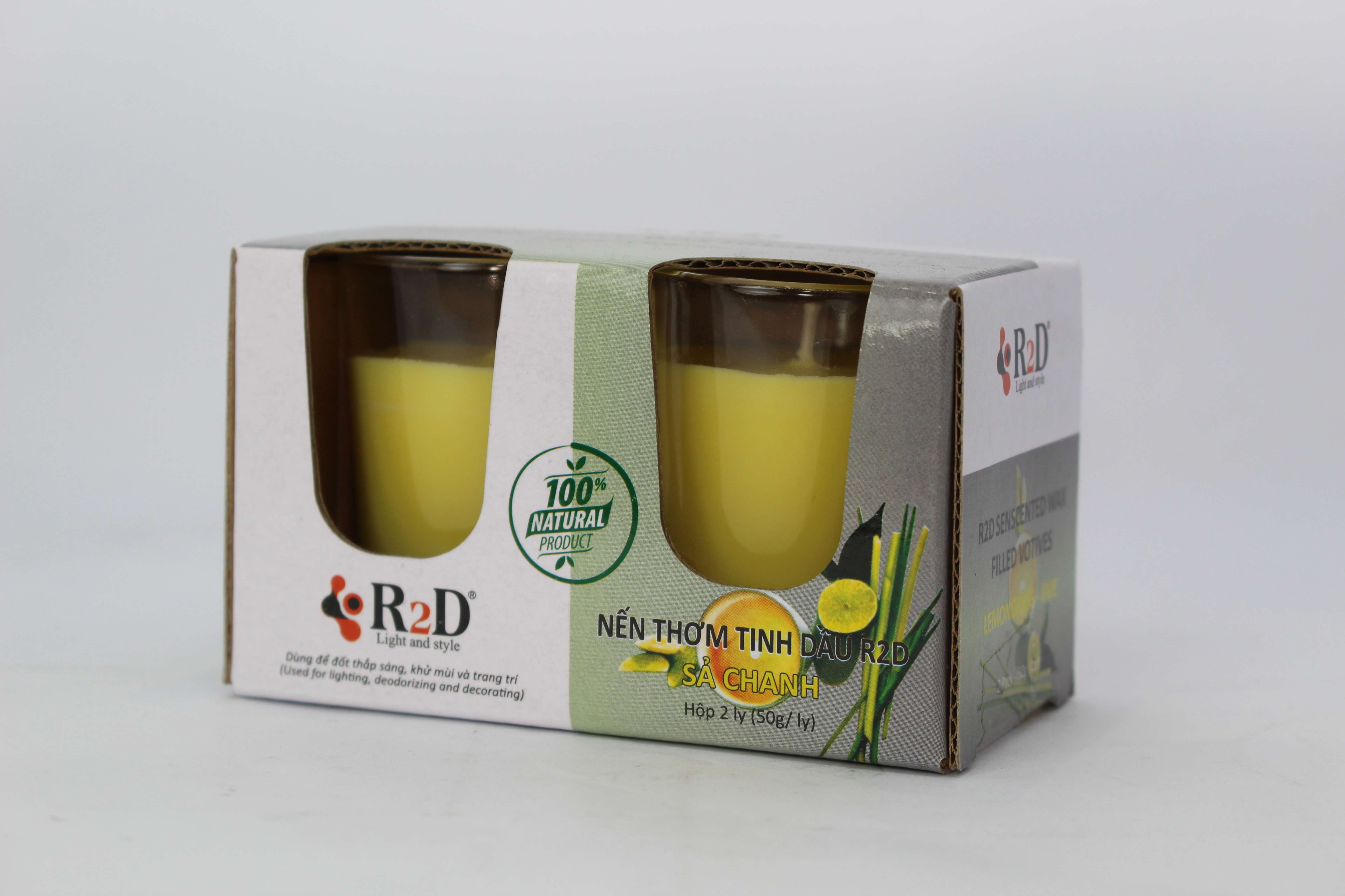 NẾN THƠM TINH DẦU SẢ CHANH [LY 50G - HỘP 2 LY] ĐẾN TỪ THƯƠNG HIỆU R2D, LÀM TỪ DẦU CỌ, DẦU DỪA, TINH DẦU, NGUYÊN LIỆU TỰ NHIÊN, LÀNH TÍNH. - Chúng