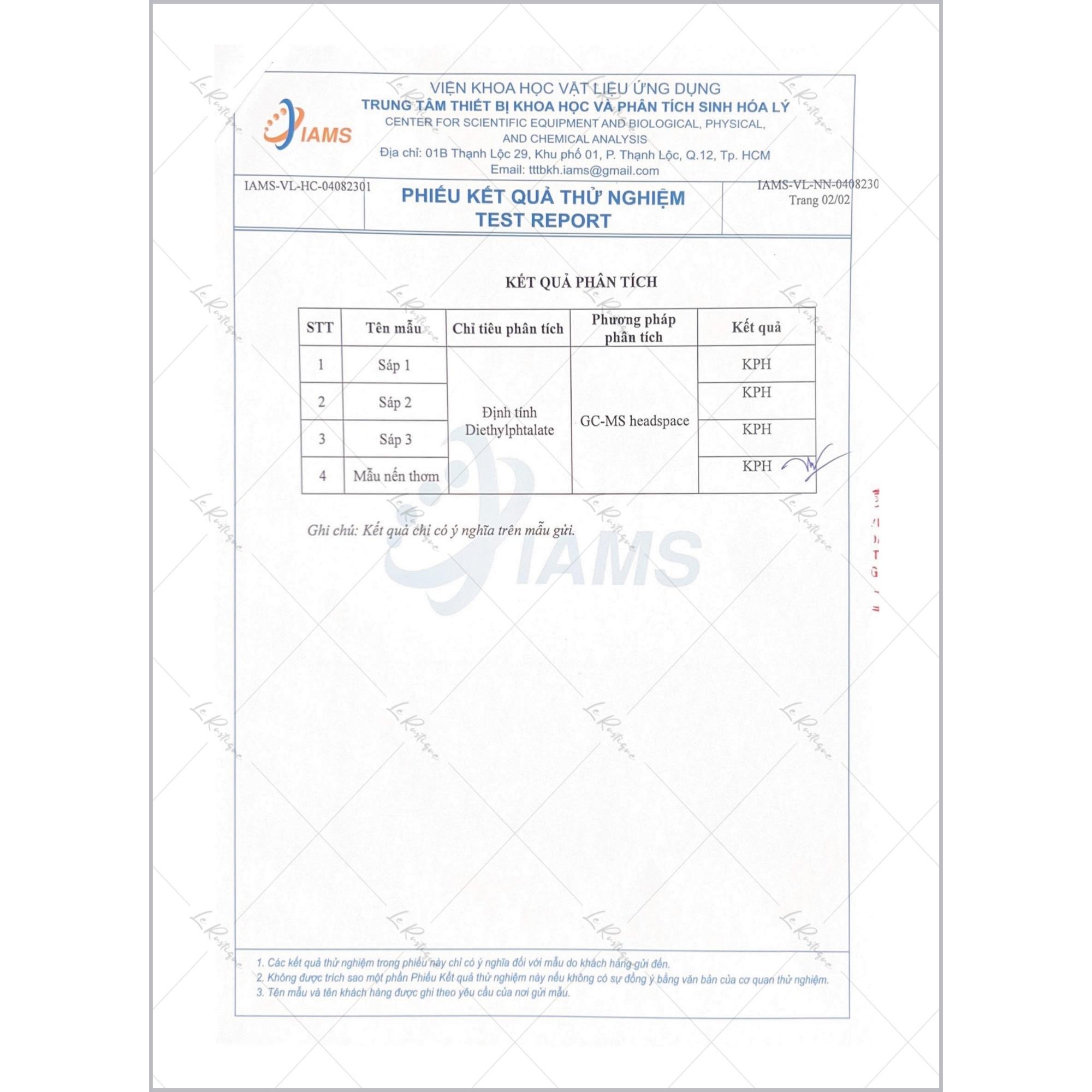 - Thành phần chính: Hỗn hợp sáp dừa, sáp đậu nành nguyên chất và tinh dầu tự nhiên.