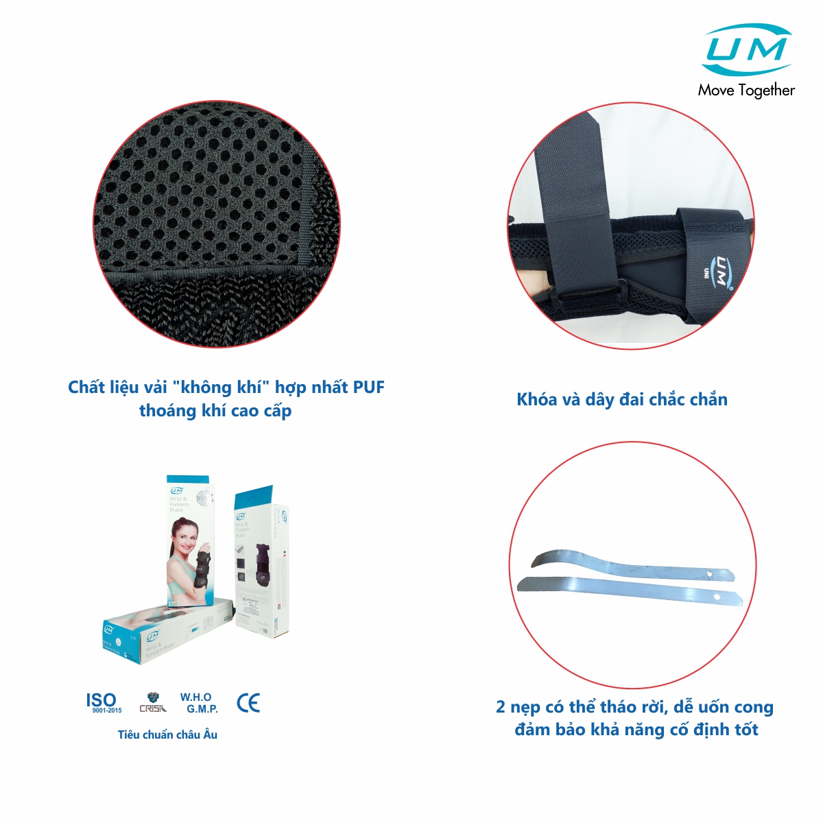 - Không ủi khô. THÔNG TIN THƯƠNG HIỆU United Medicare (UM) là nhà sản xuất hàng đầu các sản phẩm chỉnh hình và phục hồi chức năng trong khoảng thời gian 8 năm trở lại đây. Chúng tôi tự hào sở hữu nhà máy sản xuất hiện đại theo tiêu chuẩn ISO 9001:2015. Các đơn vị sản xuất của chúng tôi đã được thiết lập theo các thông số quốc tế và đáp ứng các tiêu chuẩn WHO-GMP. Tất cả sản phẩm đều được sản xuất theo tiêu chuẩn Châu Âu và có đánh dấu CE. Sản phẩm của UM hiện đang có mặt tại Vương quốc Anh, Hoa Kỳ, Canada, UAE, Kenya, Malaysia, Mauritus, Nepal, Châu Phi