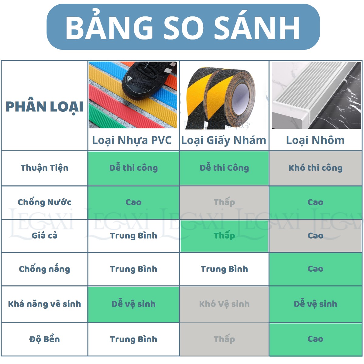 Phù hợp với nhiều loại bậc thang từ bậc thang thông thường cho đến bậc thang đá hoa cương có phần chìa ra nguy hiểm,...