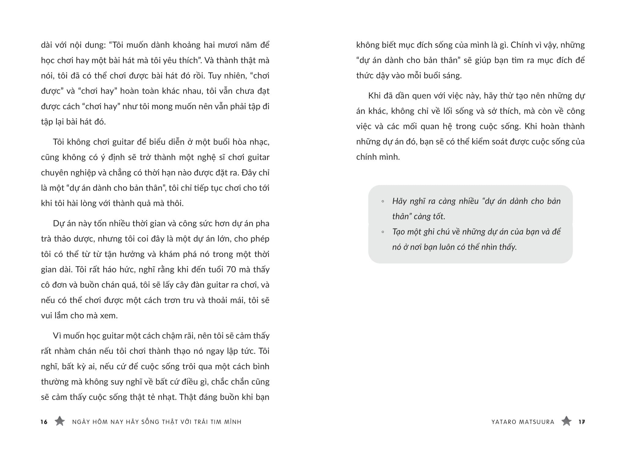 Bạn có muốn mỗi ngày của m.ình trở nên ý nghĩa hơn không? Chỉ cần một chút thay đổi nhỏ, cuộc sống hàng ngày của bạn sẽ trở nên đặc biệt. Trong cuốn sách Ngày hôm nay hãy sống thật với trái tim m.ình của Yataro Matsuura – một người luôn tràn đầy năng lượng và kinh nghiệm sống phong phú – bạn sẽ tìm thấy những bí quyết để làm việc hiệu quả hơn và tận hưởng cuộc sống trọn vẹn hơn. Là người sáng lập kiêm tổng biên tập tạp chí nổi tiếng "Kurashi no Techo", ông đã đúc kết những kinh nghiệm quý báu qua nhiều năm để chia sẻ cùng bạn đọc.