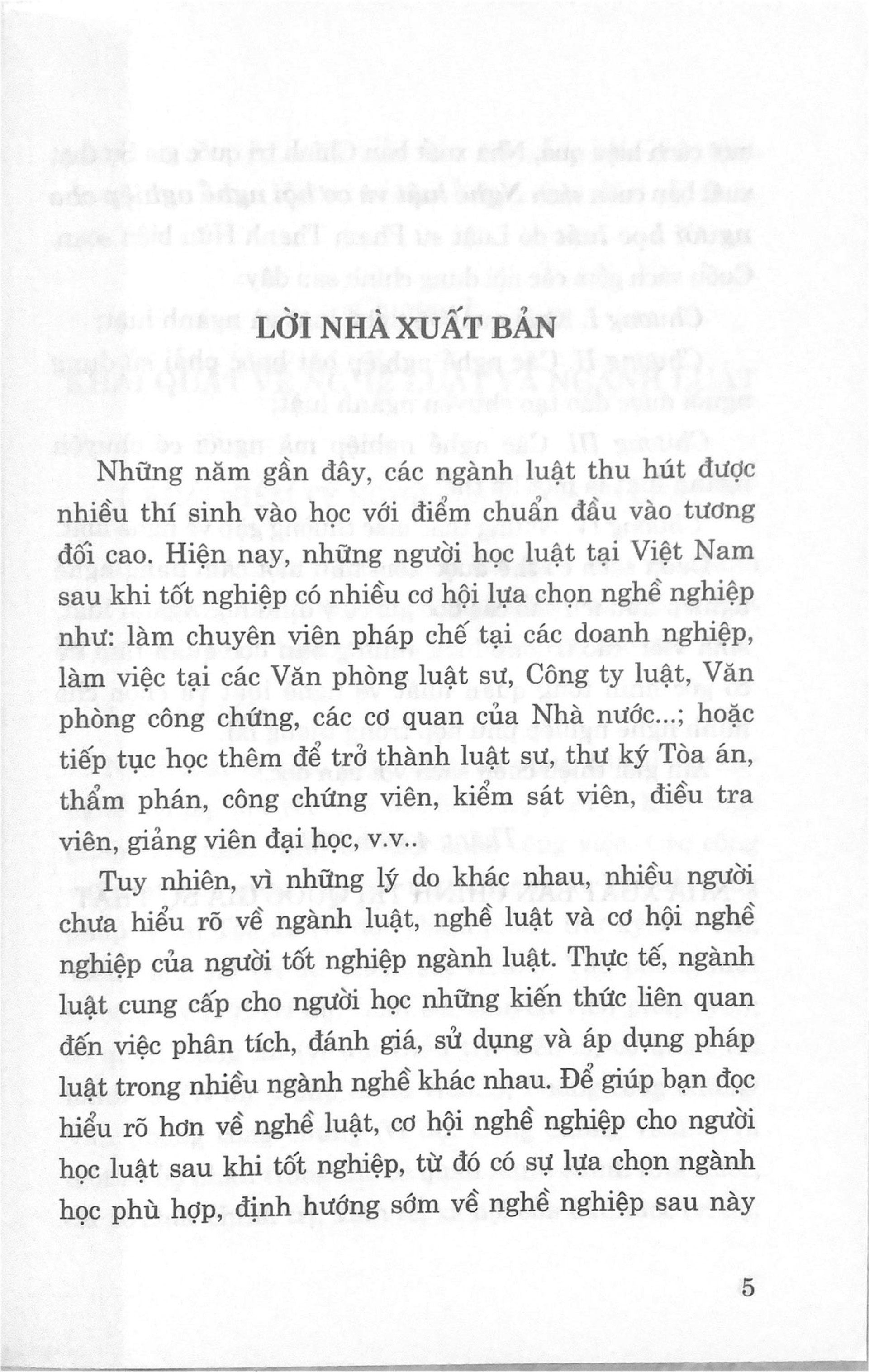 Mua tại TiktokNghề Luật và cơ hội nghề nghiệp cho người học luật Tác giả: Luật sư Phạm Thanh Hữu Nhà xuất bản: Chính Trị Quốc Gia Sự Thật Khổ sách: 14.5*20.5cm Năm phát hành: 5.2024 Công ty phát hành: Nhà xuất bản Chính Trị Quốc Gia Sự Thật Giá bìa: 54.000đ Số trang: 180 trang Hình thức bìa: Bìa mềm Cuốn sách gồm các nội dung chính sau đây: Chương I: khái quát về nghề luật và ngành luật. Chương II: các nghề nghiệp bắt buộc phải sử dụng người được đào tạo chuyên ngành luật. Chương III: các nghề nghiệp mà người có chuyên ngành luật là một lợi thế. Chương IV: những thắc mắc thường gặp về nghề luật.
