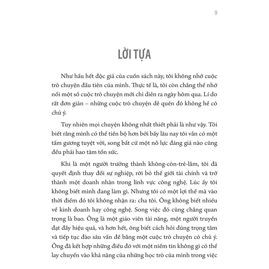 Những cuộc trò chuyện còn đọng lại trong ký ức của bạn thường là những cuộc trò chuyện đặc biệt ý nghĩa, khai mở cho bạn những vấn đề hay những quan điểm, suy nghĩ mới mẻ. Bởi vậy, nếu biết cách tận dụng những cuộc trò chuyện đơn giản, đời thường, bạn hoàn toàn có thể biến chúng trở thành những bài học, bí quyết cực kỳ giá trị cho công việc và cuộc sống tương lai.