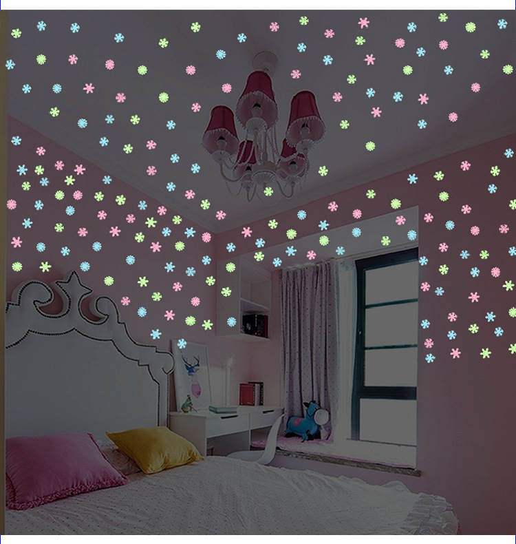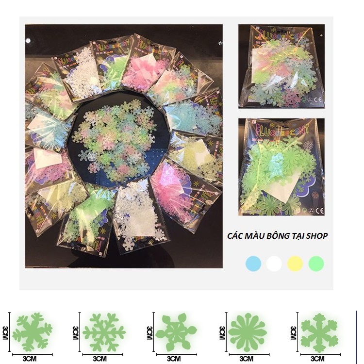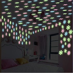 Ngôi sao - hoa tuyết dạ quang (3cm) với họa tiết dạ quang nổi trong đêm sẽ mang đến một không gian lung linh cho căn phòng của bạn.Sản phẩm dán được trên nhiều bề mặt khác