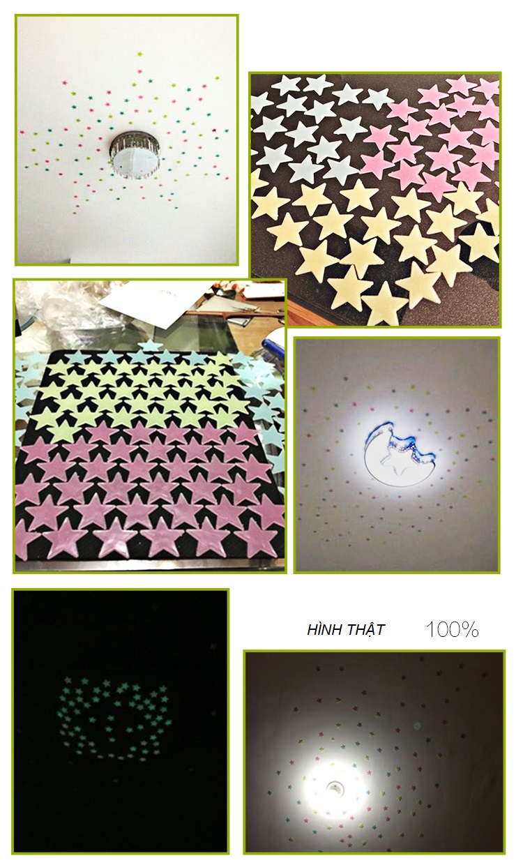 CÁCH SỬ DỤNG : - B1 : Phơi nắng trước khi dán, cũng có thể cho sao hấp tụ ánh điện ít nhất 20p. - B2 : Dán sao lên tường hoặc treo lên tùy