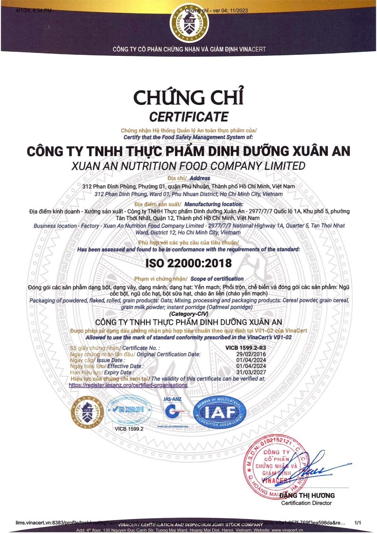 Sản phẩm của: Công ty TNHH Thực Phẩm Dinh Dưỡng Xuân An
