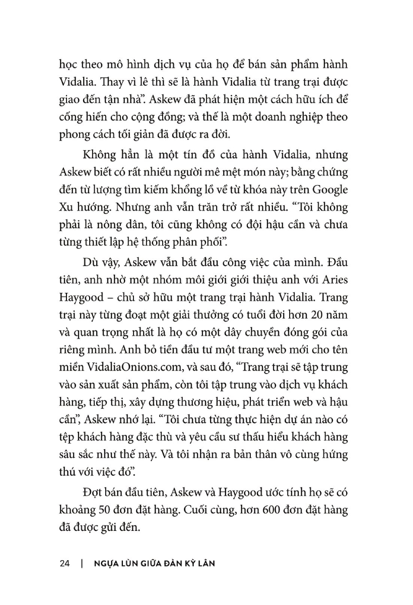 Họ xây dựng quy trình của riêng mình dựa theo tệp khách hàng mà họ muốn hướng đến, song tất cả đều tập trung vào việc giải quyết vấn đề của khách hàng và không quá cố chấp với vị thế của công ty trên thương trường. Dẫu có điểm khác biệt trong cách thực hiện, song chúng ta vẫn có thể rút ra được nhiều bài học hay qua câu chuyện của từng công ty ấy trong cuốn sách Ngựa Lùn Giữa Đàn Kỳ Lân .