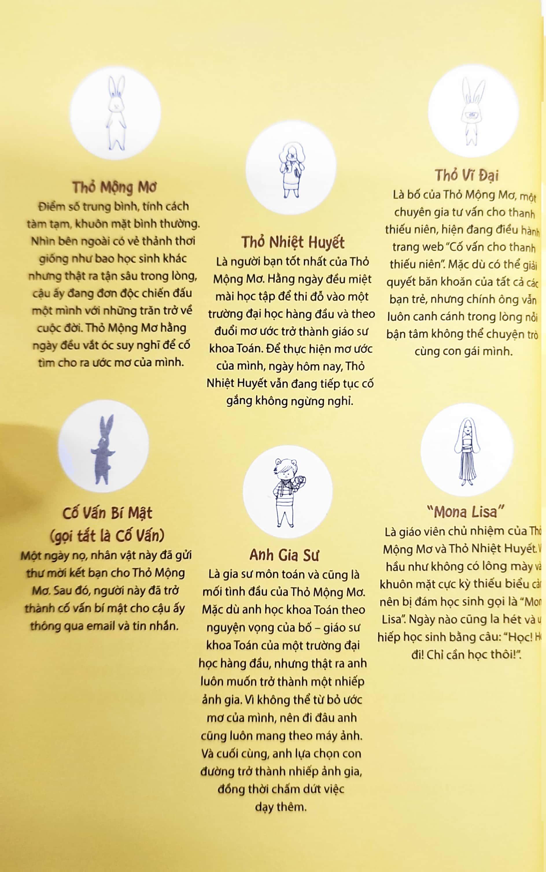 Bố đặt tên cho tớ như vậy là để nhắc nhở tớ rằng đừng bao giờ quên đi giấc mơ của mình. Nhưng tớ nghĩ cái tên và cuộc đời mình chẳng liên quan gì đến nhau hết. Tớ chẳng thích làm gì và cũng chẳng biết mình giỏi thứ gì. Đến cả giấc mơ của mình, tớ cũng chẳng biết luôn. Lúc tớ kể nỗi băn khoăn ấy với Thỏ Nhiệt Huyết, bạn ấy đã nói thế này: “Cậu thử nói chuyện với bố xem. Mỗi khi có người đăng băn khoăn lên trang web ‘Cố vấn cho thanh thiếu niên’ của bố cậu, ông ấy đều trả lời hết sức tận tình mà. Sống chung nhà với một người như vậy mà sao cậu lại không tận dụng cơ hội chứ?”.