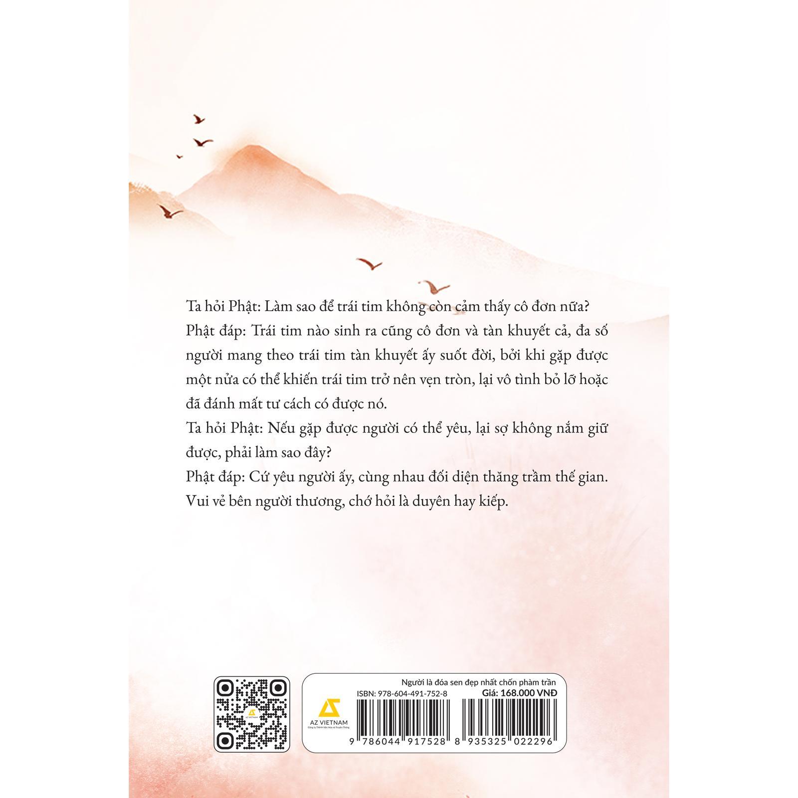 Mua tại TiktokTa chẳng biết từ đâu tới, cũng chẳng biết đi đâu. Bao năm nay ta một mình ngồi giữa đài sen, bầu bạn với hồ nước trong veo phẳng lặng trước đài, sen đỏ dưới hồ thấp thoáng ẩn hiện. Thỉnh thoảng, chúng nở nụ cười tươi đẹp cao khiết, đổi lấy một nụ cười của ta, song phần lớn thời gian đều chìm sâu đáy nước, chỉ có hồ nước sâu thẳm phẳng lặng như gương đối diện với bầu trời. Trời xanh cao xa vời vợi kia tựa như cuộc đời đằng đẵng vô tận của ta, mây sao đều là ảo ảnh ta tạo nên từ cô độc. Trong đó có núi xanh trùng điệp trải dài, có thành cổ tràn ngập ánh nắng, có điện Kim Loan nguy nga lộng lẫy, có tuyết liên thanh khiết như tuyế Còn có một số người. Những người ta yêu và từng yêu ta, con dân của ta, họ thành kính bái lạy ta. Ánh dương khuynh thành, vĩnh viễn không có bóng đêm. Ta một mình ngồi trên đỉnh núi xa xăm, nhìn xuống muôn vạn chúng sinh. Tử sinh đều là hư ảo, chẳng qua chỉ tham hoan lạc nhất thời. Hưởng lạc khổ, lấy gì vui. Có lẽ ngươi không biết, khoái lạc phóng túng chính là đau khổ tột cùng. Từng chuyện xa xưa như gió tuyết trôi qua, ngàn cánh hạc phấp phới, sen nở mà người đã chẳng còn. Có kẻ nói, ta là Phật. Có người nói, ta đã thành Phật. Thực ra ta chẳng phải ai hết, ta chỉ là ta, một người đàn ông ngồi trên đài cao nhìn mây nổi mây tan, lòng nhập trần ai. Ta tin nhân thế luân hồi, không sợ sa vào địa ngục vĩnh viễn. Ta không vươn nổi đôi tay ve vuốt bầu không, vậy để ta chân giẫm lên sen, đến từ đâu thì đi về đó, quay về biển sâu hoặc chìm vào cát bụi, ta có thể mỉm cười thưa với Phật Tổ: Khi ta đứng trước người, ta là đóa sen đẹp nhất chốn hồng trần.
