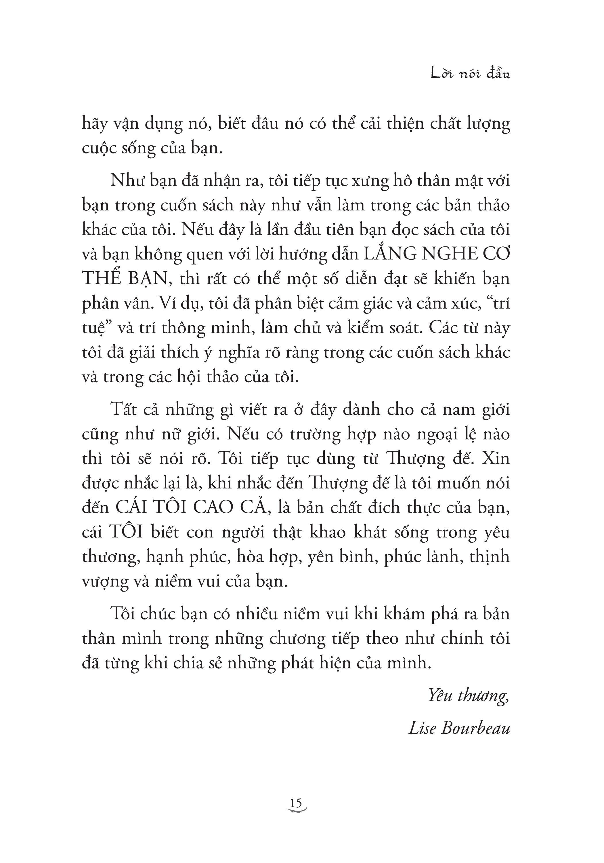 Nhận Diện 5 Tổn Thương GIỚI THIỆU SÁCH: Cuốn sách mô tả những quan sát của tác giả trong hình thể, ngôn ngữ và lời nói của những người đang tái diễn tổn thương (với tổn thương nhục nhã, bị bỏ rơi, bị phủ nhận, bị phản bội, bị đối xử bất công). Nhờ những miêu tả trực giác này của tác giả mà chúng ta có thể phán đoán được một người đang bị ảnh hưởng nhiều bởi chấn thương cảm xúc nào, và việc tự đánh đồng chấn thương cảm xúc đầu đời ấy đã tác động lên cuộc đời họ, cách họ sinh hoạt, nói năng, cách họ đưa ra các lựa chọn của đời m.ình, và rồi được biểu hiện qua cơ thể ra sao. Qua những tổn thương đó, chúng ta thấy được mối quan hệ giữa mặt nạ vô thức ta mang trong quá trình đối phó với những tổn thương và biểu hiện của chúng trên cơ thể ta. Thông qua cuốn sách, chúng ta dần thấu hiểu tâm thức của con người và có thể rút ra được bài học cho chính m.ình trên hành trình “thành nhân” (theo cách nói của Carl Rogers) hay “thành toàn tự ngã” (theo cách nói của Carl Jung) của mỗi chúng ta. TÁC GIẢ: Lise Bourbeau là tác giả nổi tiếng toàn cầu, bà đã viết 20 cuốn sách, trong đó có nhiều đầu sách best-seller về chủ đề lắng nghe cơ thể và nhận diện những tổn thương bên trong. Sách của bà được dịch ra gần 20 ngôn ngữ trên thế giới. Từ khi thành lập trường phái nghiên cứu của m.ình vào năm 1982, những tư tưởng của bà đã giúp đỡ rất nhiều người cải thiện chất lượng cuộc sống và tạo ra những thay đổi bền vững hàng ngày. Lắng nghe cơ thể bạn, trường phái phát triển bản thân có sức ảnh hưởng lớn nhất ở Quebec, đã được truyền bá trong các buổi hội thảo trên hơn 20 quốc gia và trong 10 thứ ngôn ngữ. Bộ sách “Nhận diện 5 tổn thương” và “Chữa lành 5 tổn thương” là hai trong số rất nhiều đầu sách best-seller của bà. TRÍCH ĐOẠN SÁCH HAY: Khi một đứa trẻ được sinh ra, tự trong sâu thẳm nó đã biết lý do vì sao nó đầu thai. Đó chính là được làm chính m.ình trong khi sống qua rất nhiều trải nghiệm. Vả lại, linh hồn nó đã chọn gia đình và hoàn cảnh sống để sinh ra cùng với một mục tiêu rất cụ thể. Tất cả chúng ta đều có một nhiệm vụ giống nhau khi đến với Trái đất này: trải nghiệm cuộc sống cho đến khi nào chúng ta chấp nhận nó và trong quá trình đó yêu thương lấy m.ình. Chừng nào chúng ta còn chưa chấp nhận một trải nghiệm nào đó, tức là vẫn còn phán xét nó, vẫn còn dằn vặt vì nó, sợ hãi, tiếc nuối nó, hay mọi dạng không chấp nhận khác, chừng đó con người ta còn không ngừng thu hút vào m.ình những hoàn cảnh, sự kiện và con người đẩy ta quay trở lại với trải nghiệm đó một lần nữa. Một số người, không chỉ gặp cùng một trải nghiệm nhiều lần trong đời, mà còn phải đầu thai một hay nhiều lần nữa thì mới có thể hoàn toàn chấp nhận nó. Chấp nhận một trải nghiệm nào đó không có nghĩa là chúng ta mong muốn có nó hay đồng tình với nó, mà đúng hơn là cho phép ta cảm thụ và học hỏi từ những gì ta đã trải qua. Đặc biệt chúng ta phải học cách nhận ra cái gì là có ích cho m.ình, cái gì là không. Cách duy nhất để nhận ra điều đó là trở nên ý thức về hậu quả của mỗi trải nghiệm. Tất cả những gì mà ta đã lựa chọn hoặc không lựa chọn, tất cả những gì mà ta đã làm hoặc không làm, tất cả những gì mà ta đã nói hoặc không nói và thậm chí tất cả những gì ta đã nghĩ và không nghĩ, đã cảm và không cảm đều để lại hậu quả. Trước khi đi vào miêu tả các giai đoạn chữa lành cho mỗi loại tổn thương và mặt nạ ngụy trang, tôi xin được chia sẻ với các bạn những quan sát liên quan tới cung cách đi đứng, nằm ngồi, nhảy mú của những người thuộc từng loại tổn thương. Điều này sẽ làm rõ sự khác nhau về hành vi của các mặt nạ. Tùy theo mặt nạ mà cách nói chuyện và giọng nói của người ta sẽ khác: