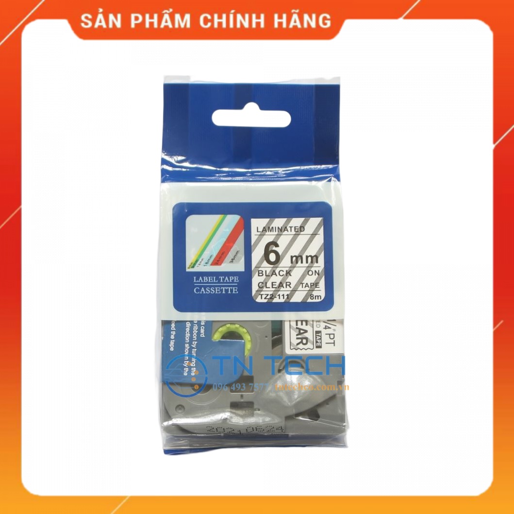 Nhãn in TZ2-111 Brother Nhãn in đa lớp sử dụng cho máy in nhãn Brother, tất cả trong 1, mực nằm bên trong, chống chịu dung môi, hóa chất, nước, dầu mỡ, nhiệt độ Mã