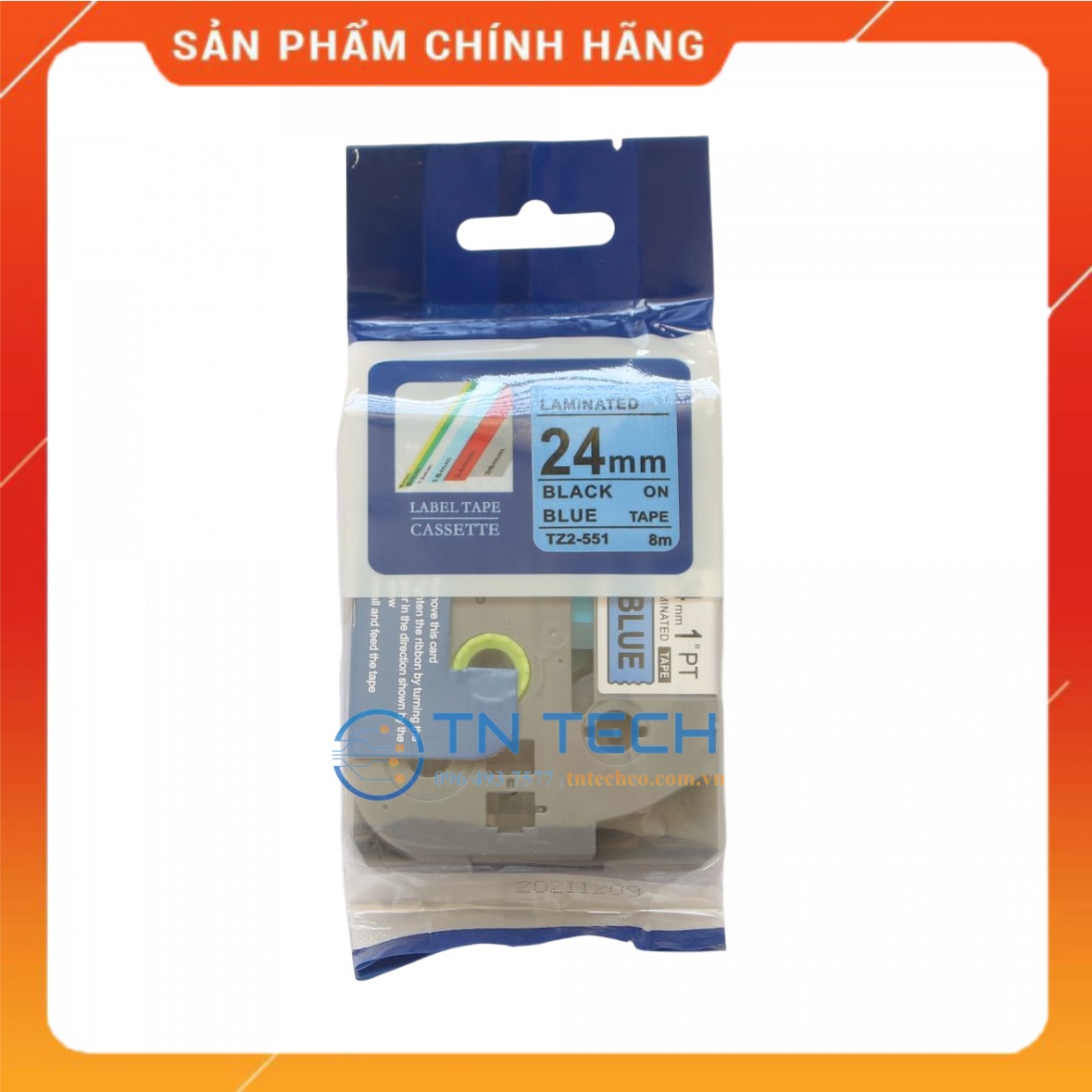 Nhãn in TZ2-551 Brother Nhãn in đa lớp sử dụng cho máy in nhãn Brother, tất cả trong 1, mực nằm bên trong, chống chịu dung môi, hóa chất, nước, dầu mỡ, nhiệt độ Mã