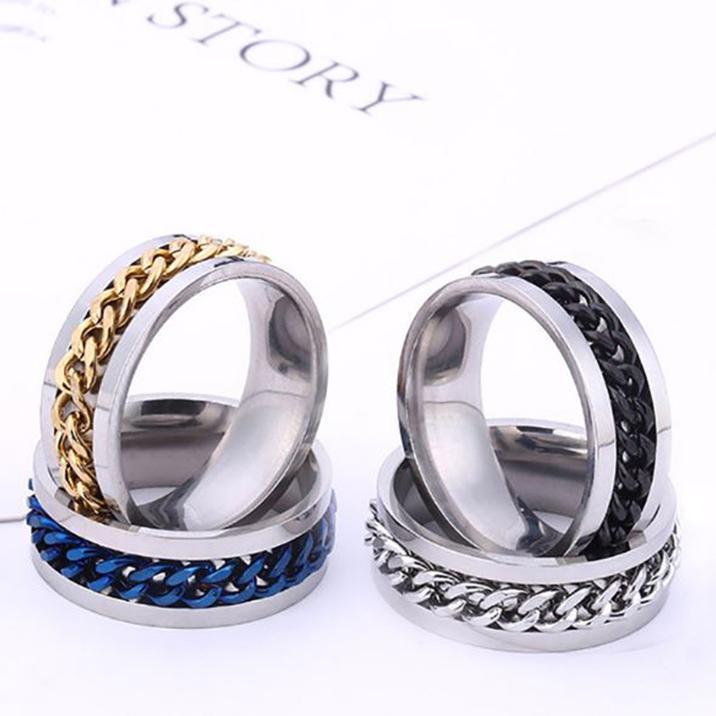 Mua tại TiktokNhẫn inox phối xích xoay nam nữ nhiều màu cao cấp thời trang thép không gỉ trangsucpt khui bia