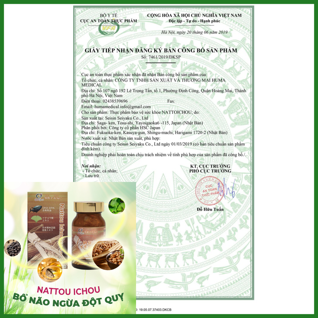 VIÊN UỐNG NATTOU ICHOU - giảm cholesterol máu, giảm xơ vữa động mạch, ngừa đột quỵ, tăng tuần hoàn não
