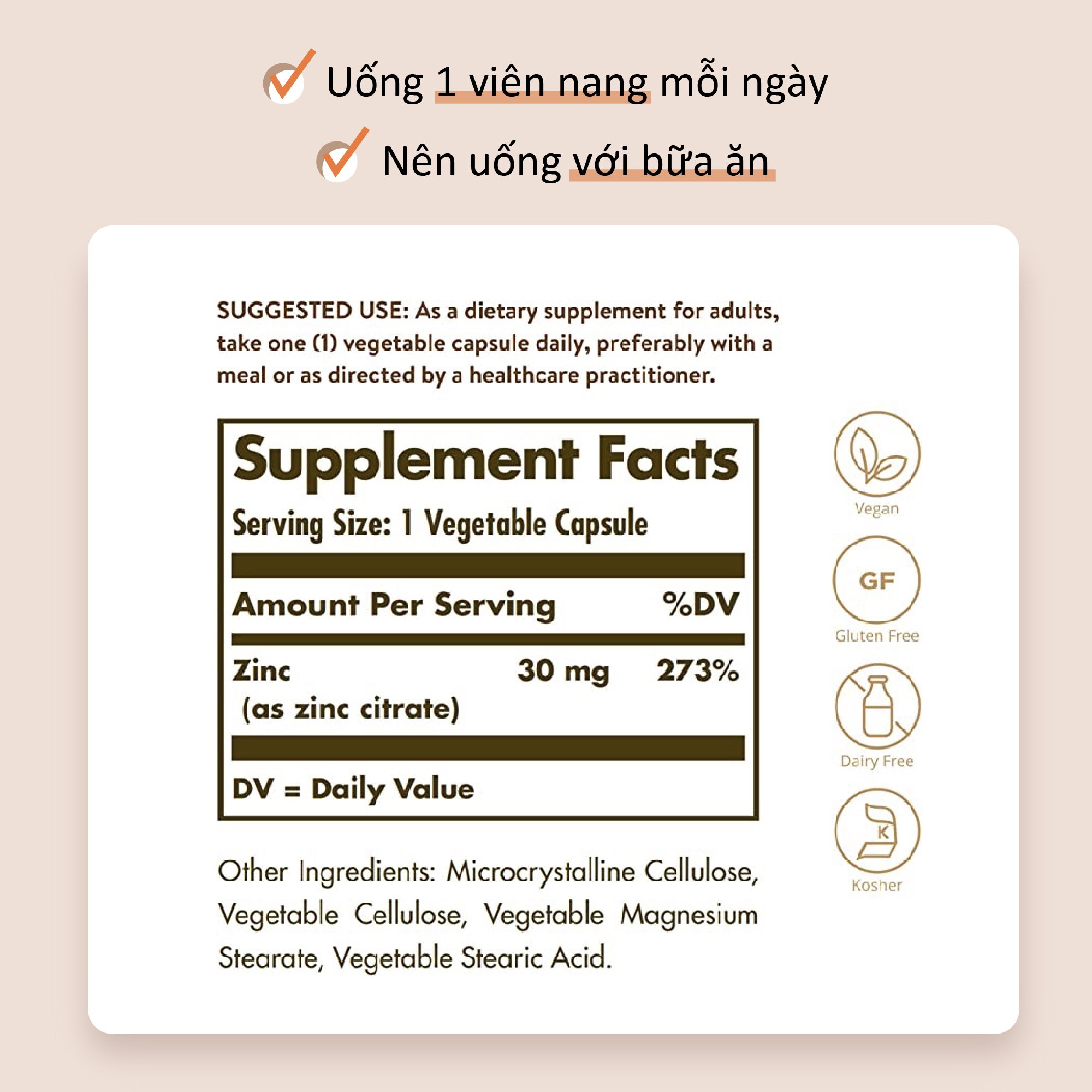 ✨NHẬP KHẨU USA CHÍNH HÃNG - Viên uống tăng cường sức khỏe sinh lý nam giới, ngăn ngừa các bênh tuyến tiền liệt Solgar Kẽm Citrate 30mg