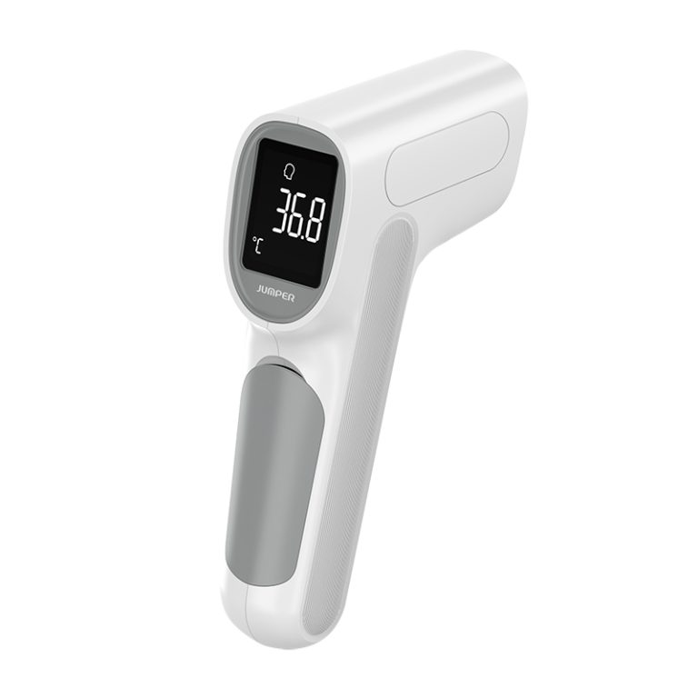 Ưu điểm của nhiệt kế đo trán hồng ngoại Jumper FR202  Nhiệt kế đo trán hồng ngoại JPD-FR202 đo cơ thể người hoặc nhiệt độ vật thể dựa trên năng lượng hồng ngoại phát ra