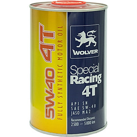 Wolver Special Racing là phiên bản đặc biệt của dòng sản phẩm nổi tiếng Wolver Racing mà Wolver Lab chỉ phân phối giới hạn tại một số thị trường trọng điểm trên thế giới. Sản phẩm được pha chế dầu gốc tổng hợp với hệ phụ gia thiết kế chuyên dụng cho động cơ xe máy 4 thì, bao gồm cả động cơ xe phân khối lớn, xe số và xe tay ga. Wolver Special Racing đáp ứng tiêu chuẩn API SN, độ nhớt SAE 10W-40 và có chu kỳ sử dụng khuyến cáo lên đến 5000 km, cung cấp tính năng bôi trơn hoàn hảo, bền bỉ bảo vệ động cơ trong những điều kiện khắc nghiệt, từ các tour đường trường không nghỉ, địa hình đồi dốc cho tới các vùng đồi cát đầy nắng, gió và muối biển. Tiêu chuẩn kỹ thuật: API SN/ SAE 5W-40 Đáp ứng yêu cầu: JASO MA-2 Đặc tính: