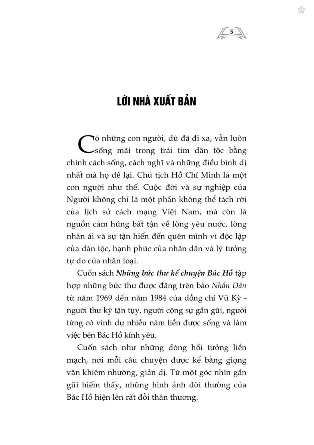 Cuốn sách Những bức thư kể chuyện Bác Hồ tập hợp những bức thư được đăng trên báo Nhân Dân từ năm 1969 đến năm 1984 của đồng chí Vũ Kỳ người thư ký tận