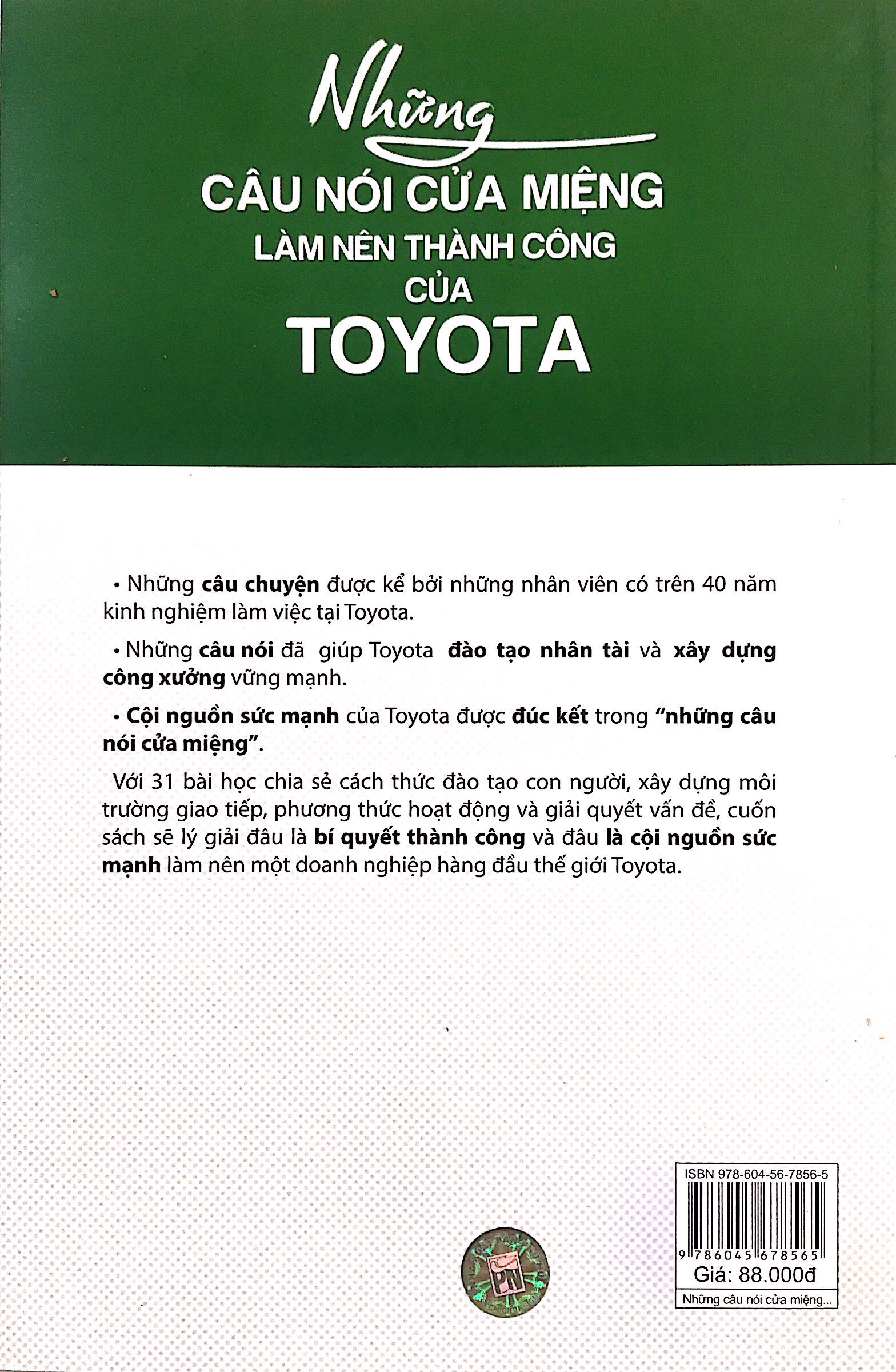 Sau cơn khủng hoảng Lehman một thời gian, trong công ty Toyota truyền tai nhau một câu nói: “Có một thứ mà chúng ta nhất quyết phải lấy lại. Mặc dù công ty đã chịu thiệt hại vô cùng lớn nhưng chỉ cần quay trở lại phương thức Toyota thì mọi chuyện sẽ được giải quyết.” Chính điều này đã trở thành chỗ dựa tinh thần cho mọi người. Ở Toyota, họ có những "câu nói cửa miệng" lưu truyền trong công xưởng. Những câu nói đó được truyền đi từ giám đốc đến các quản lý, từ các quản lý đến các nhân viên, từ các đàn anh đi trước đến các đàn em nối sau.Cội nguồn sức mạnh của Toyota được đúc kết trong những “câu nói cửa miệng”.