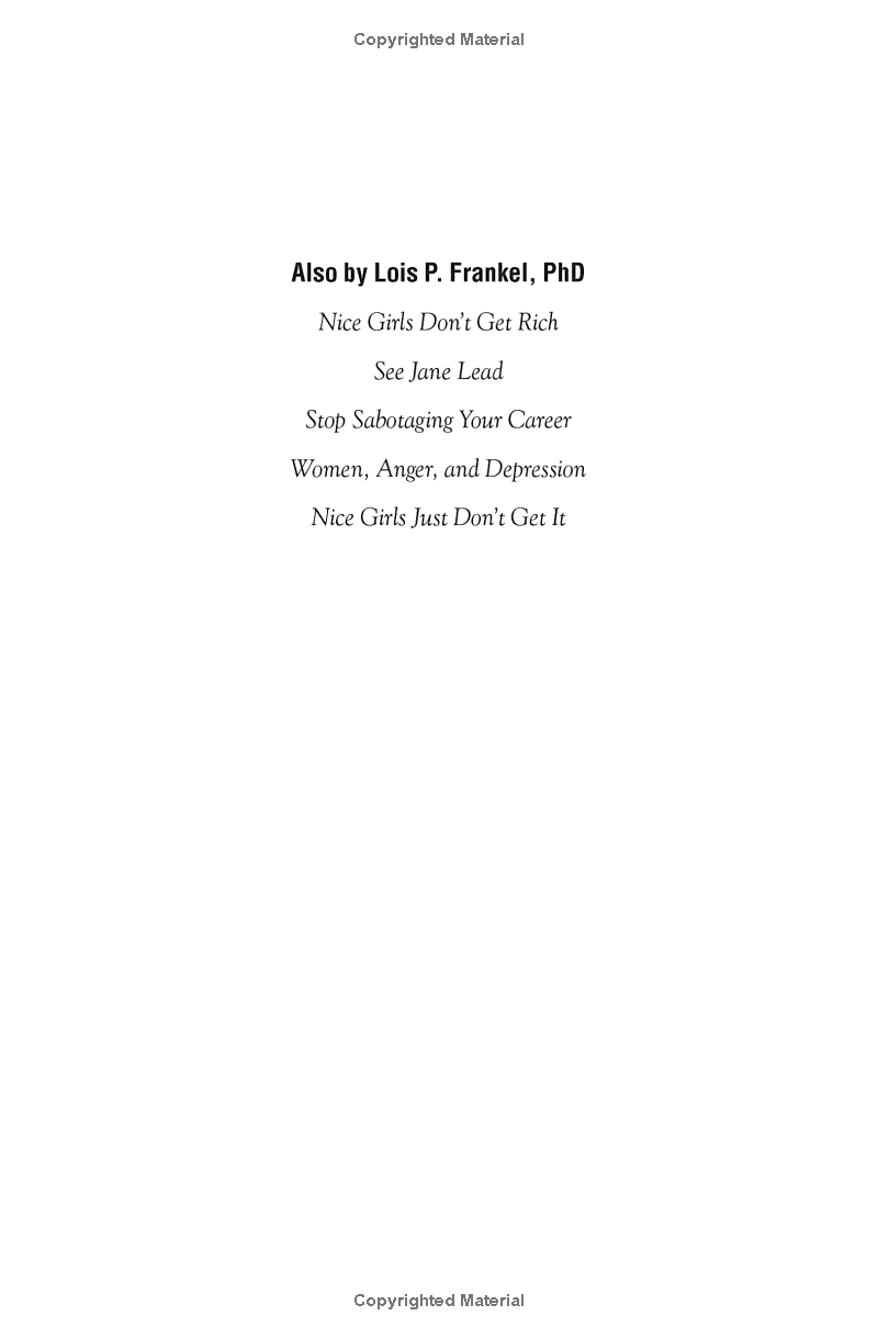 The New York Times bestseller, which for 10 years has been a must-have for women in business, is now completely revised and updated. In this new edition, internationally recognized executive coach Lois P. Frankel reveals a distinctive set of behaviors-over 130 in all-that women learn in girlhood that ultimately sabotage them as adults. She teaches you how to eliminate these unconscious mistakes that could be holding you back and offers invaluable coaching tips that can easily be incorporated into your social and business skills. The results for hundreds of thousands of women have been career opportunities they never thought possible-at every stage of their career, from entry-level to the corner office! Stop making "nice girl" errors that can become career pitfalls.