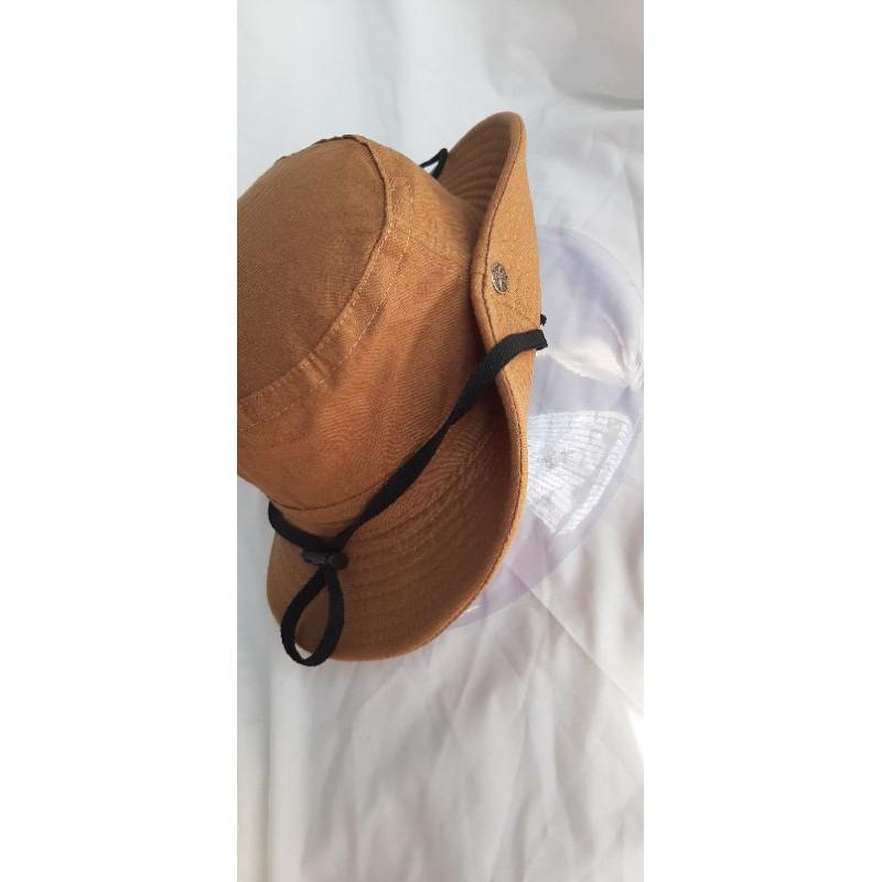 Vải Kaki dày dặn nhưng không nóng vì là 100%cotton. Có dây đeo không lo gió bay. Nút bấm kim loại 2 bên vành nón để bẻ lên cho ngầu luôn. Shop nhận thêu logo