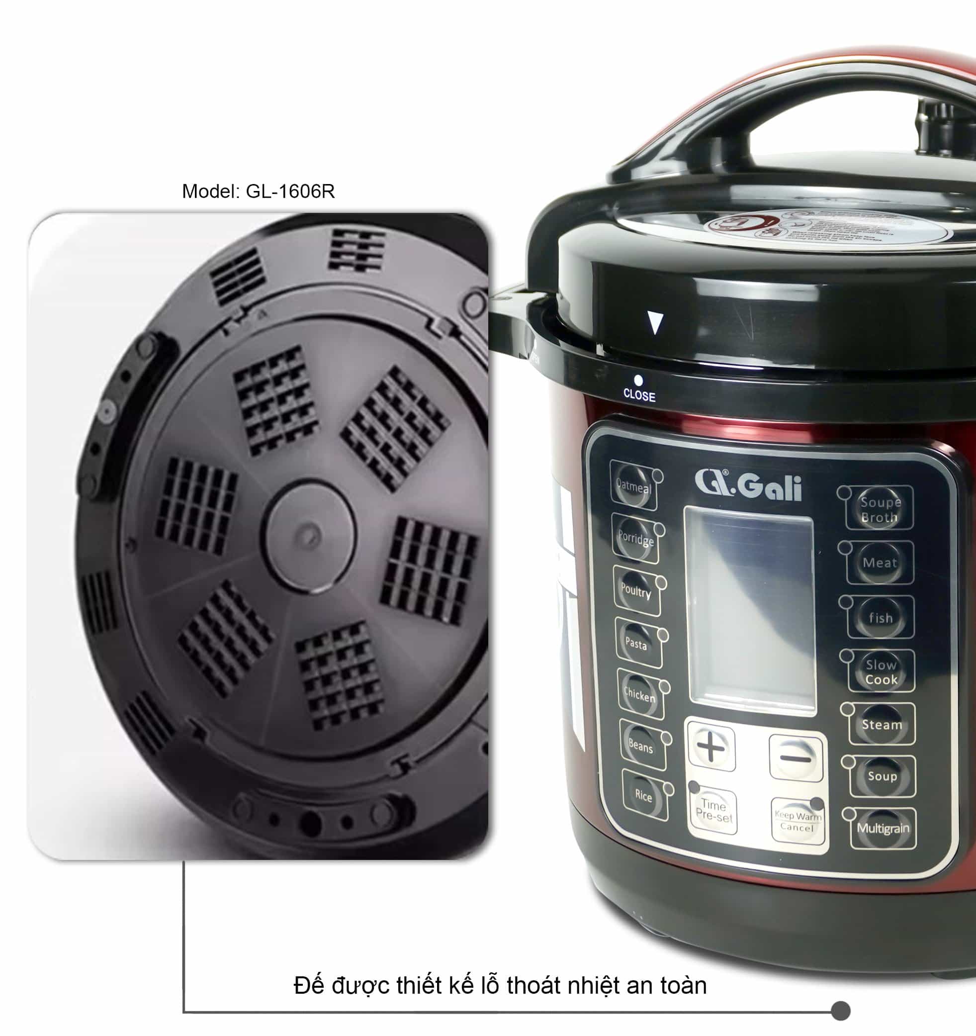 NỒI ÁP SUẤT ĐIỆN GALI GL-1606K – DUNG TÍCH 6L, NẤU CỰC NHANH, CỰC AN TOÀN!