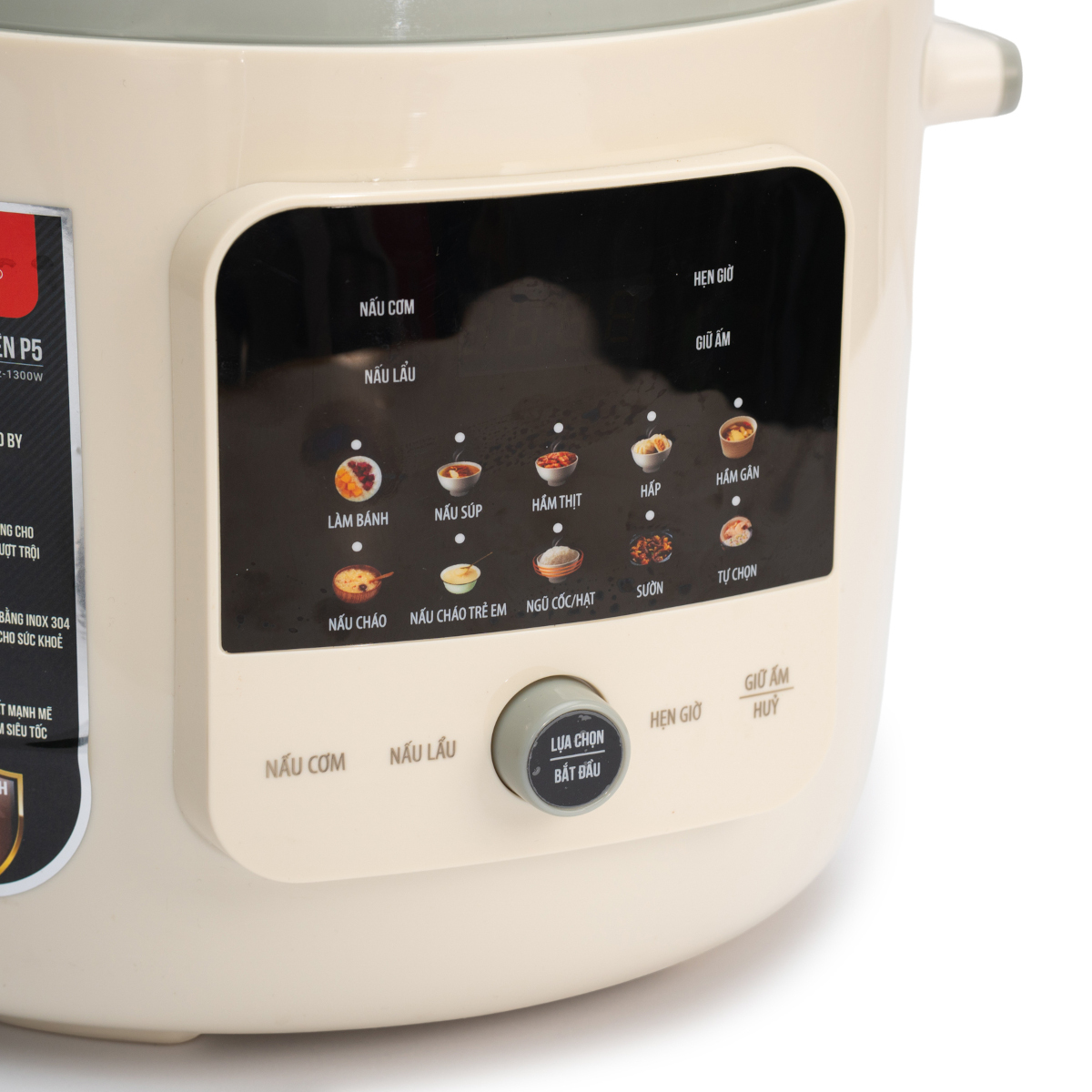 Đặc điểm nổi bật - Nồi áp suất đa chức năng : nấu cơm, nấu cháo, hầm gân, ninh, súp, hấp, giữ ấm - Dung tích : 5.0 lít phù hợp gia đình 4 - 6 người.