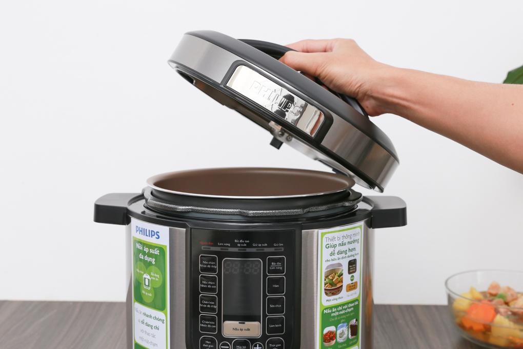 Nồi áp suất có van khóa ngăn không cho mở nắp nồi khi trong nồi còn áp suất, an toàn tối đa khi sử dụng