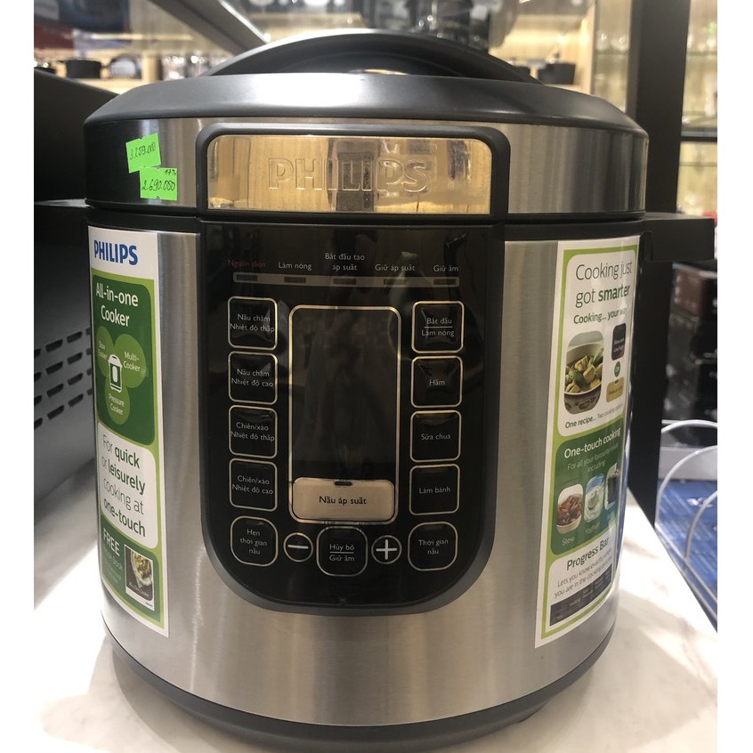 Nồi áp suất điện đa năng Philips HD2103 Chi tiết: Nhiều chức năng: nấu cơm, hầm thịt, hầm xương, đun nước... Nồi chống dính cao cấp dày 1,8mm, bền, dễ chùi rửa. Thiết bị an toàn