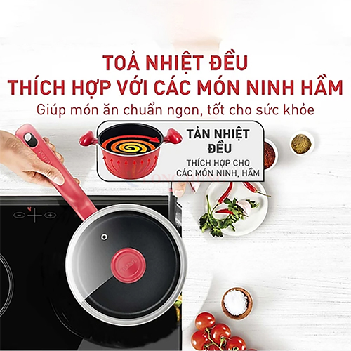 Bộ nồi gồm 4 nồi: Nồi nhỏ 16 cm để kho, hai nồi 18 cm và 20 cm trung để nấu canh. Nồi lớn 24 cm luộc gà nguyên con khoảng 1.5 – 1.8 kg.