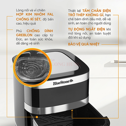 Nồi chiên không dầu Bluestone 9 lít AFB-5886 - Công suất : 1800W - Dung tích : 9 Lít - Bảng điều khiển : Cảm ứng ( Tiếng Việt ) - Thiết kế mặt trước