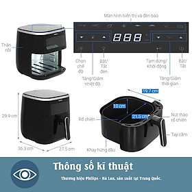 -Với công nghệ Rapid Air, Airfryer luân chuyển khí nóng xung quanh giỏ nấu bọc lưới kim loại, sử dụng ít dầu hoặc không dùng dầu khi chiên rán, nướng thịt và nướng bánh.