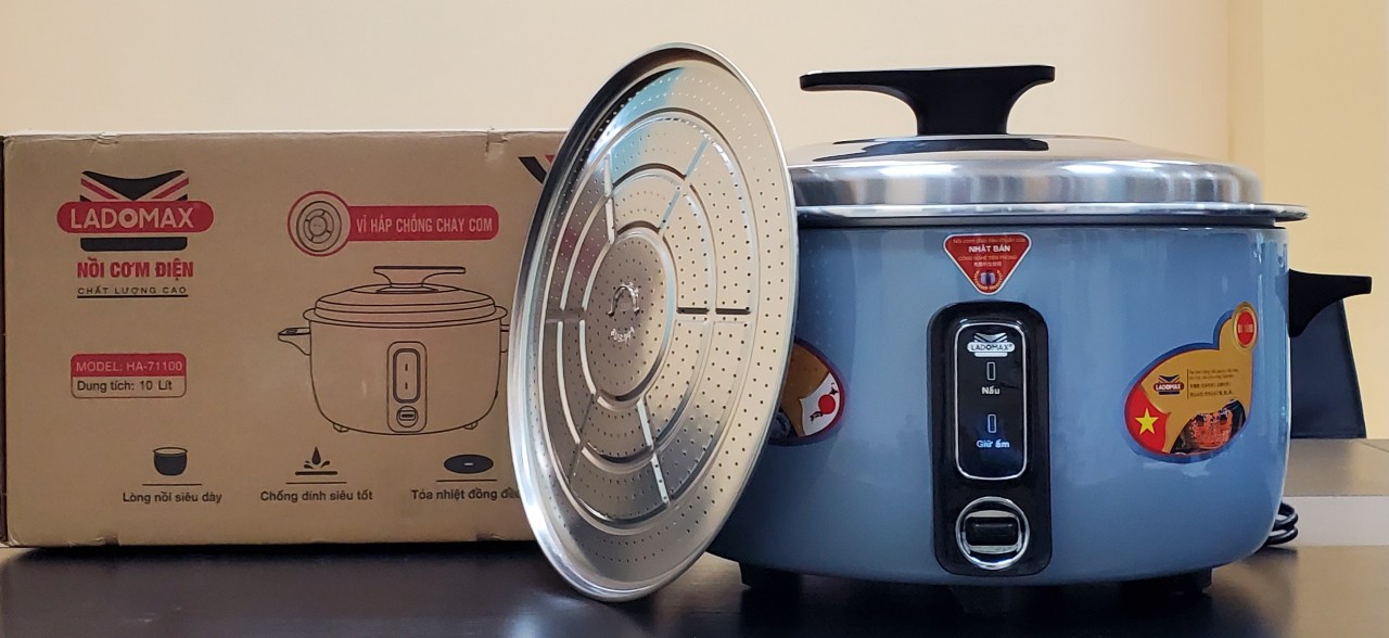✨Nồi cơm điện công nghiệp 10L Ladomax công nghệ Nhật, nấu 6.5kg gạo, chống cơm cháy kèm vỉ hấp inox-Hàng chính hãng