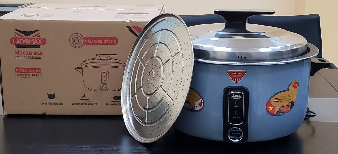 Test nồi cơm công nghiệp cao cấp 16L Ladomax Ha-71160 có tặng khay chống cháy cơm.