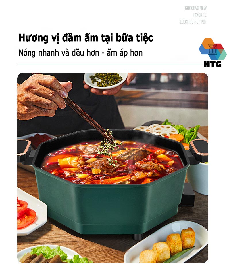 Đặc điểm nổi bật - Nồi lẩu điện đa năng: Lẩu, nướng, chiên, xào, rán, hấp - Dung tích lớn 5.0 lít, phù hợp cho nhu cầu 4 - 6 người. - Nồi nhôm đúc nguyên chất có độ