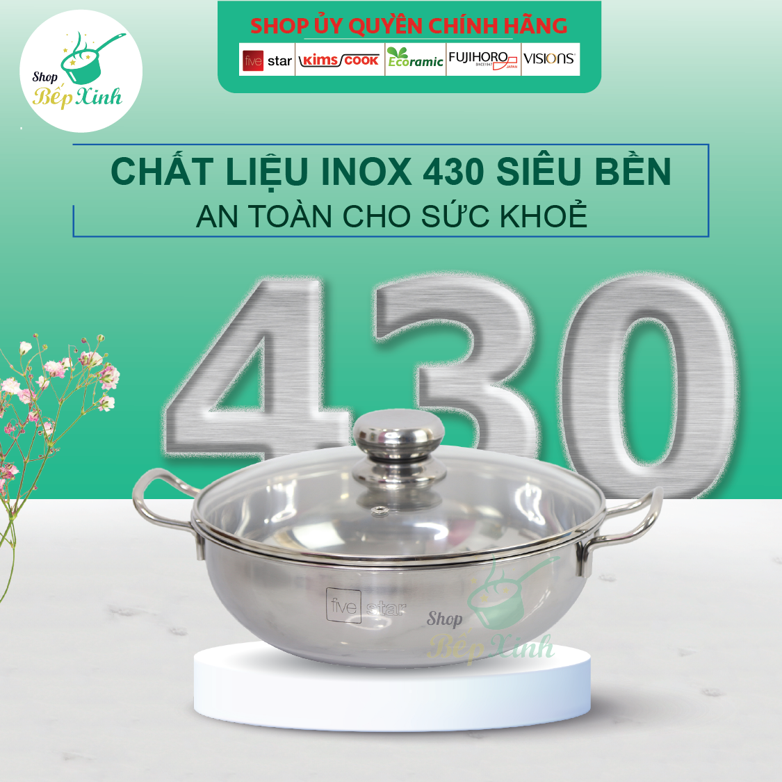 Nồi lẩu 2 quai Inox 430 Fivestar 24cm nắp kính hàng chính hãng, bảo hành 5 năm