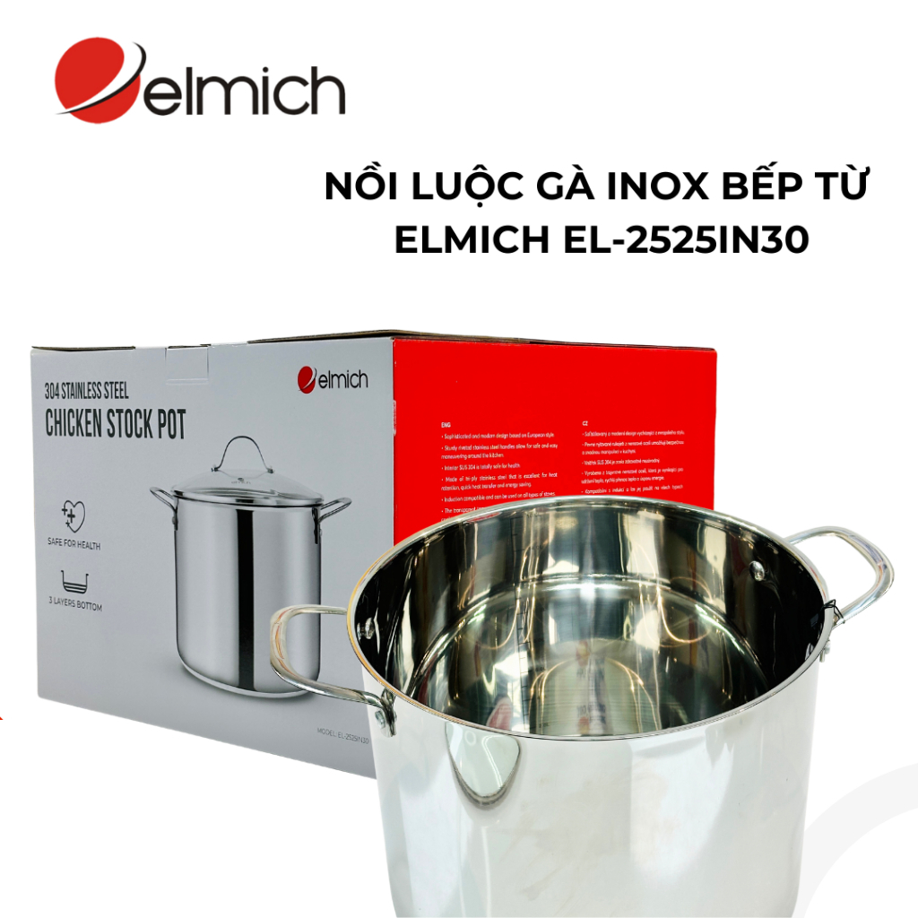 Nồi luộc gà inox 304 Elmich EL-2525IN30 size 30cm cao 24cm dung tích 16L - #sanhangre 0986588655