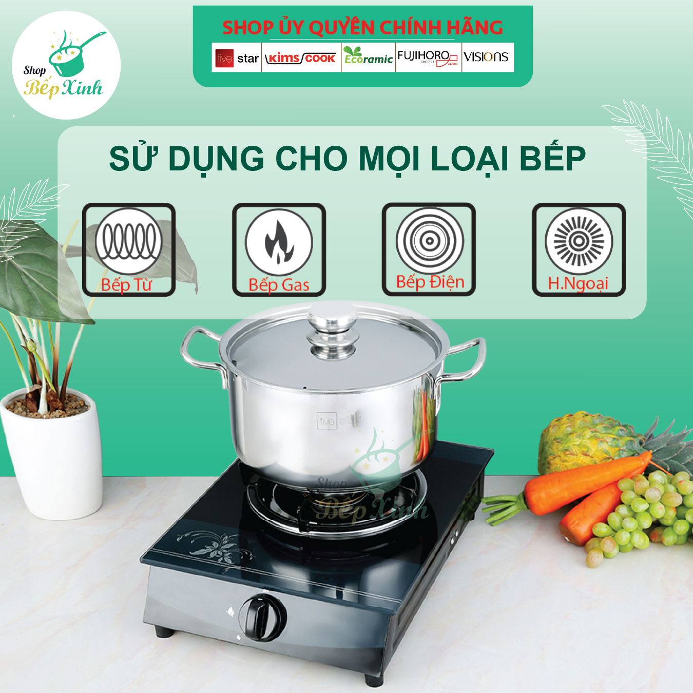Đặc điểm nổi bật Cấu tạo 3 đáy truyền nhiệt nhanh, giữ nhiệt tốt, hạn chế cháy khét thực phẩm. Đường kính 30cm có xửng hấp nấu ăn đa năng: luộc gà, nấu canh, hấp Chất