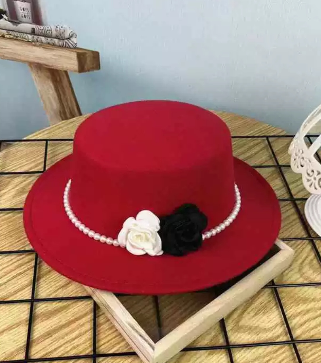 Mua tại TiktokNón cao bồi vành bằng mũ rộng vành nỉ dạ phối 2 hoa đen trắng đai ngọc trai nhân tạo thời trang Hàn Quốc Nón đi biển mũ vành nhỏ thoáng mát thời trang du lịch dã ngoại
