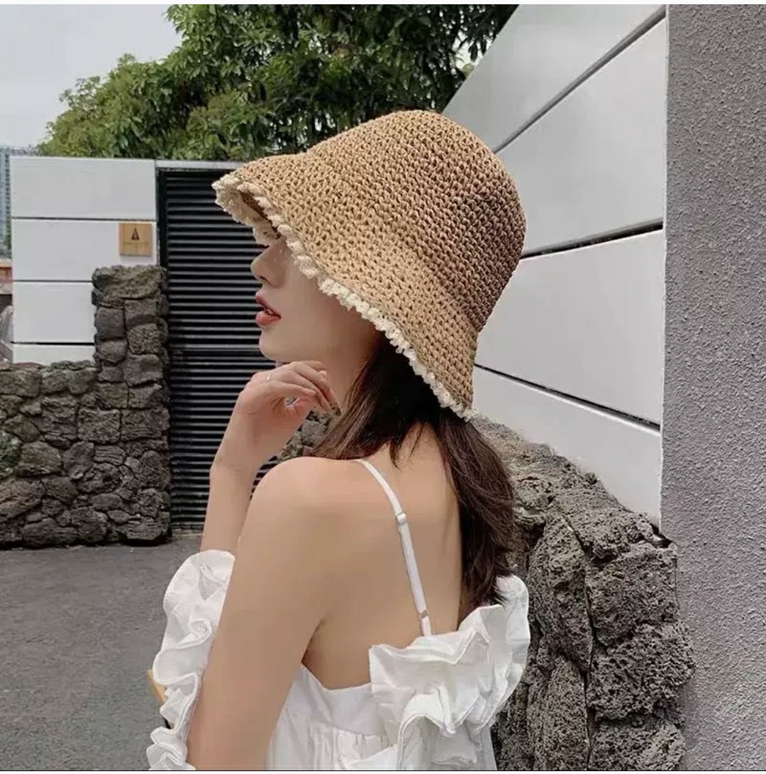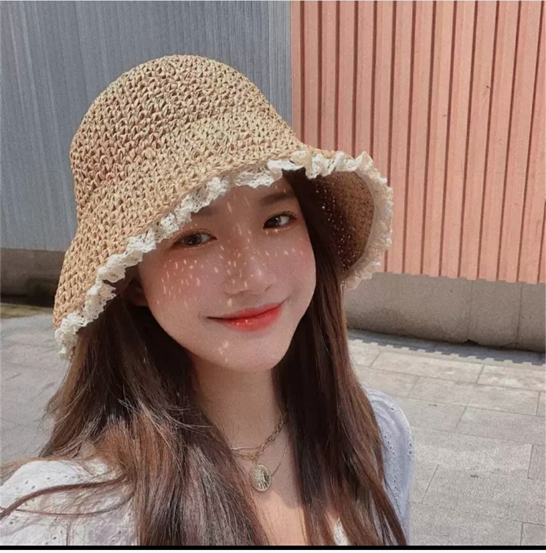 Mua tại TiktokNón đi biển viền ren mũ cói rộng vành gấp gọn che nắng mẫu mới