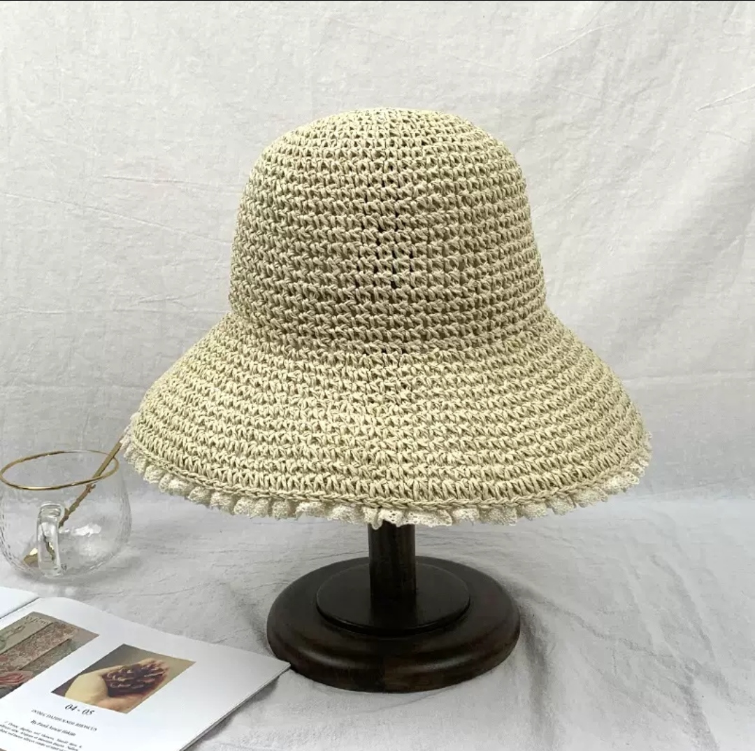 Nón mũ Nữ cói Dệt Móc Tay thoáng khí Có Thể Gập Đi Biển