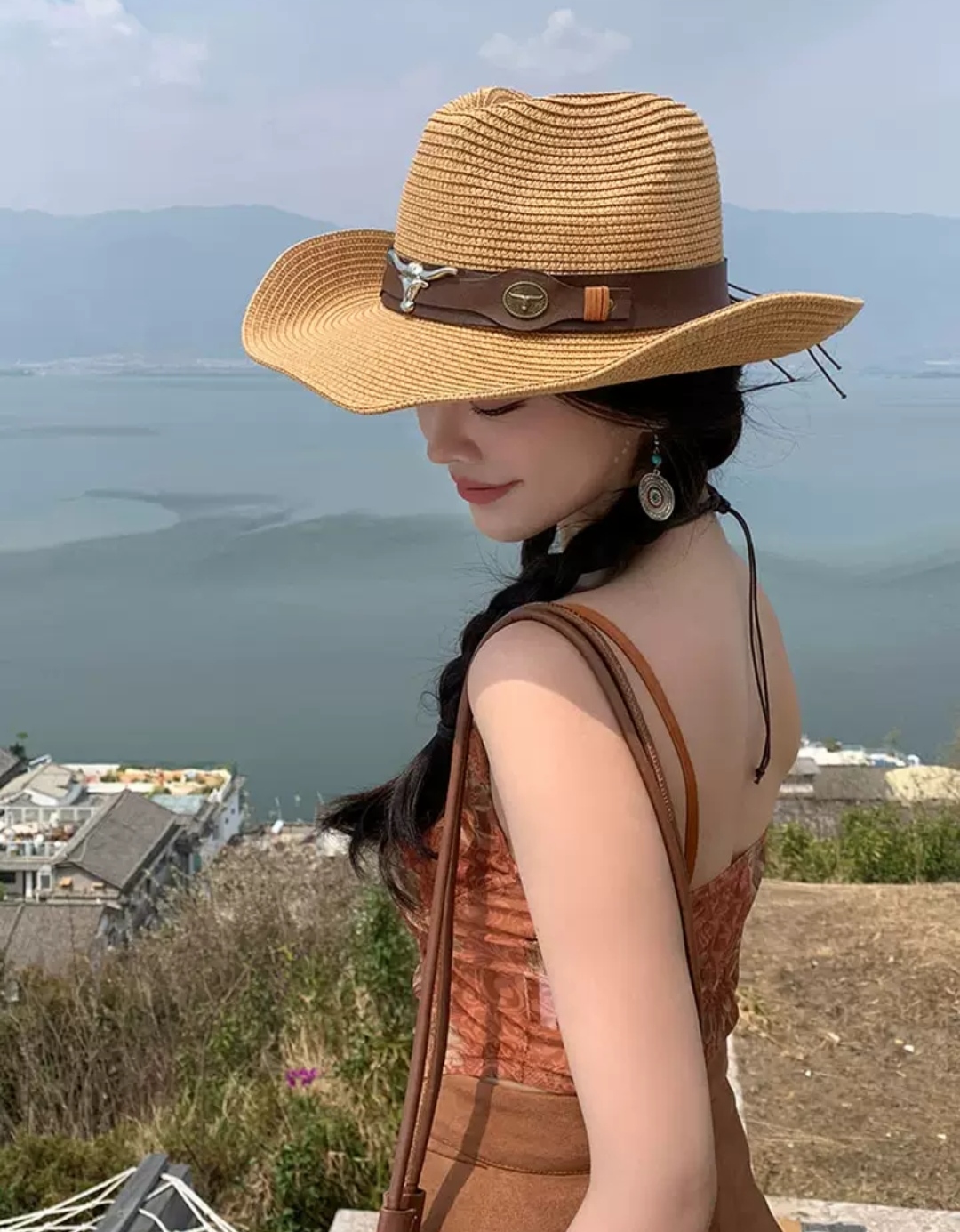 ✨Nón mũ cói cao bồi phong cách Hàn Quốc dành cho cả nam và nữ. Thiết kế đẹp, màu trắng kem nâu nhạt nâu dậm. Kiểu dáng gập gọn tiện lợi. * Sản phẩm mang phong cách Hàn Quốc Dona25060101