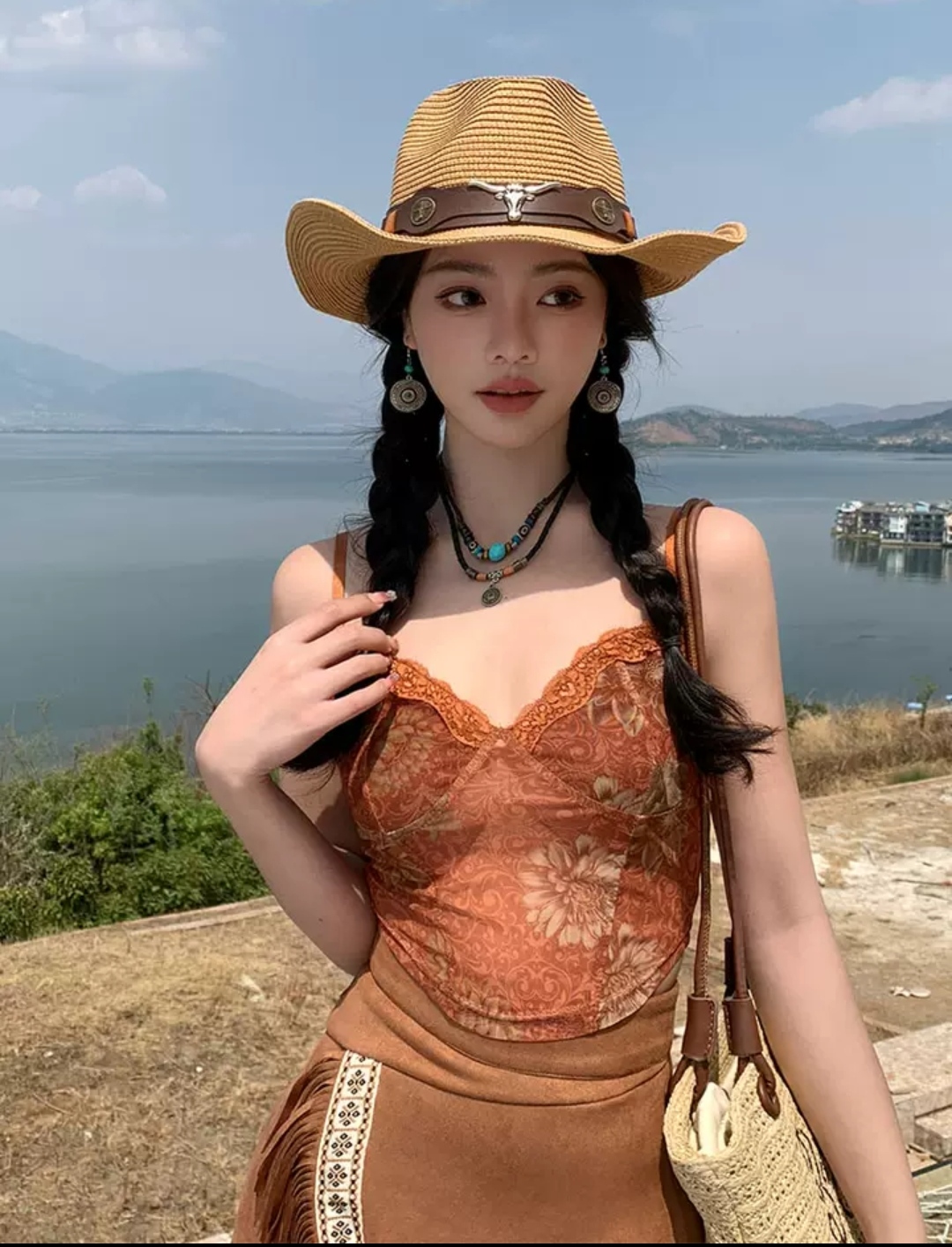 Mũ nón cao bồi phớt đai nâu hàng nhập kiểu dáng cao bồi