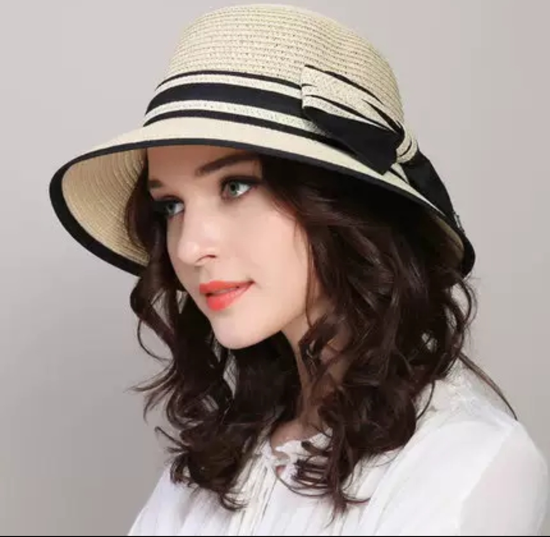Mũ cói rơm vành phẳng nữ mùa hè phiên bản Hàn Quốc chống nắng UV cho kỳ nghỉ Nón đi biển Paris thời trang hàng đầu Pháp Chất liệu cói