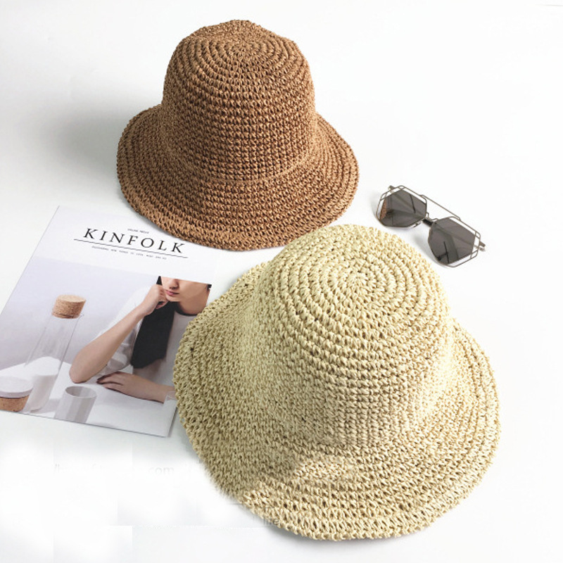 Nón mũ Nữ cói Dệt Móc Tay thoáng khí Có Thể Gập Đi Biển