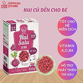 Nui Sala Củ Dền Hỗ Trợ Tăng cường đề kháng, giàu vitamin A, C, B6; tốt cho mắt, tốt cho hệ miễn dịch, vị ngọt dịu, hỗ trợ tiêu hóa và trí não cho trẻ.