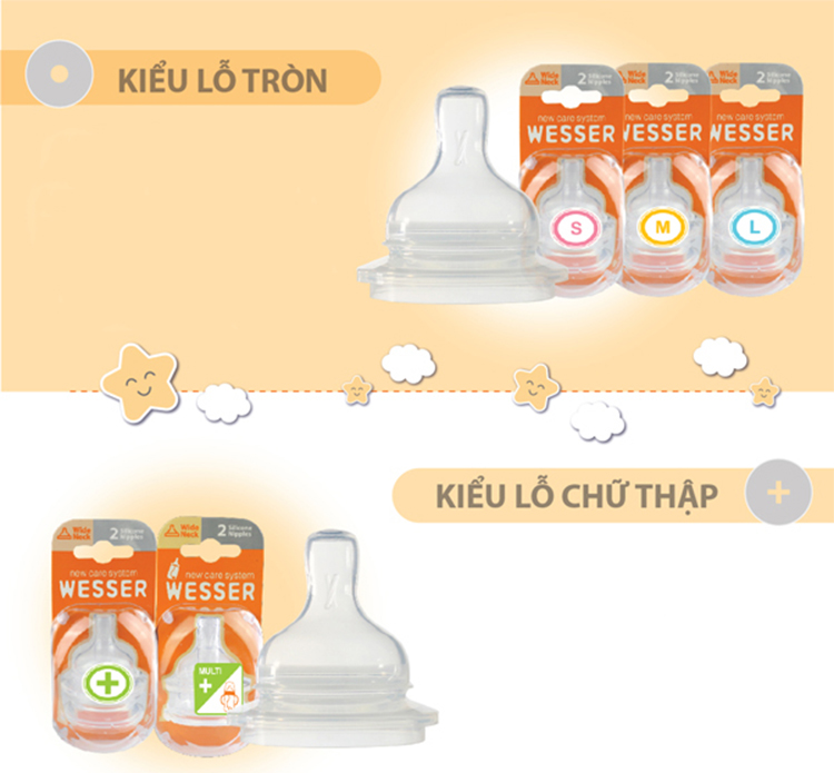 Mua tại Tiktok- Núm Vú Cổ Rộng Wesser (Size S) - Wesser là thương hiệu nổi tiếng gắn liền với các sản phẩm chăm sóc cho bé từ những ngày tháng đầu đời, với mong muốn đem tới những điều tốt đẹp nhất cho bé. Núm vú Wesser cổ rộng size + được làm từ chất liệu silicon mềm, đàn hồi, không chứa BPA độc hại, được thiết kế vừa vòm miệng của trẻ em, mẹ có thể an tâm cho bé bú mà không sợ ảnh hưởng đến sức khỏe của bé. Núm ty siêu mềm, cổ rộng, an toàn cho bé, thân thiện với môi trường, giúp bé có cảm giác thoải mái khi sử dụng.