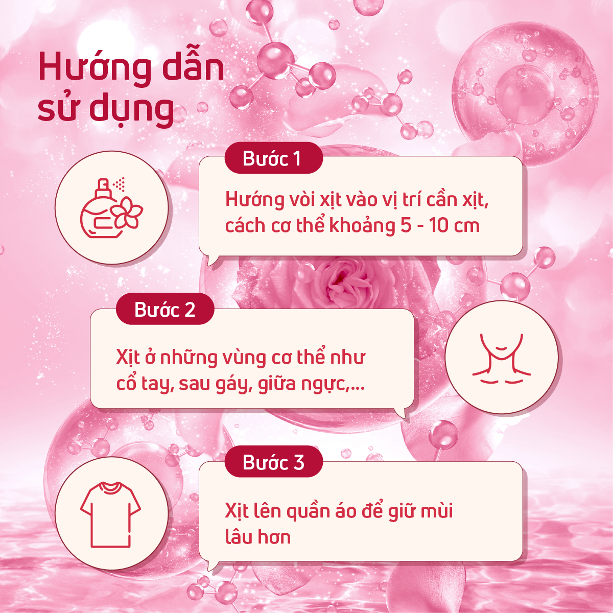 - Hướng vòi xịt vào vị trí cần xịt, cách cơ thể khoảng 5 - 10 cm.