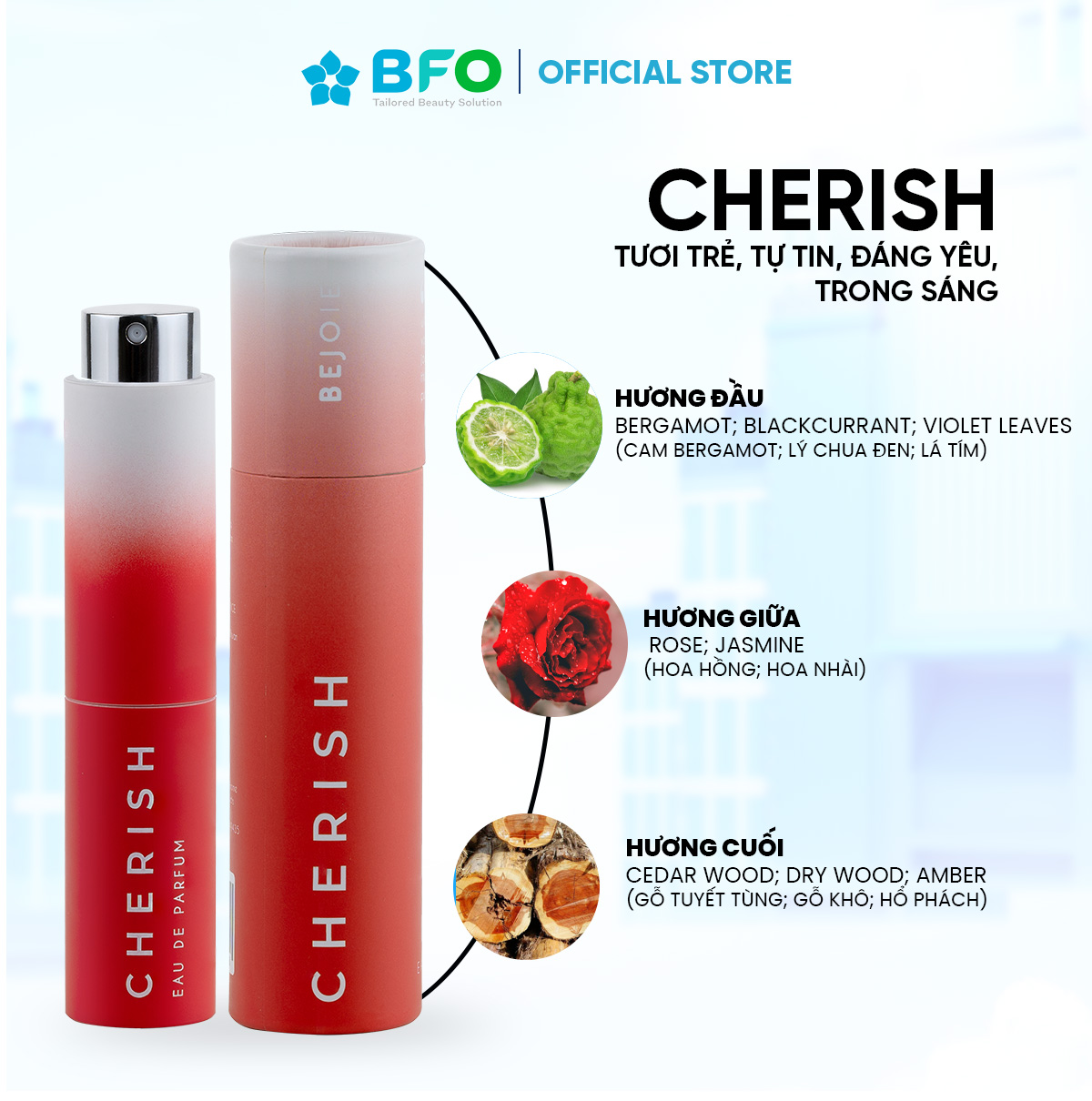 - Bejoie For Women tone ấm hương gỗ dành cho những cô nàng mạnh mẽ, cá tính, spotlight của mọi bữa tiệc: Grace, Stellar Thành phần chính: