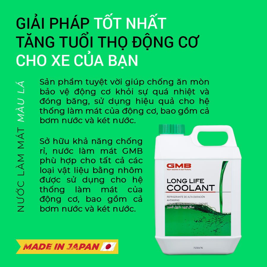 Nước Làm Mát Động Cơ Màu Lá GMB GLC-20-2.0-040 2L là sản phẩm được nghiên cứu để chống mòn, bảo vệ động cơ khỏi sự quá nhiệt và đóng băng, sử dụng hiệu quả cho hệ thống làm mát của động cơ, bao gồm cả bơm nước và két nước. Sản phẩm đã được kiểm chứng bởi các trung tâm hàng đầu, đảm bảo không những giúp bạn yên tâm hơn về chất lượng mà còn cả về độ an toàn khi sử dụng.